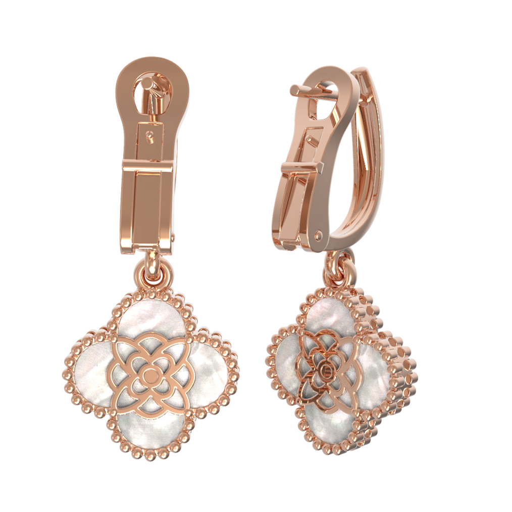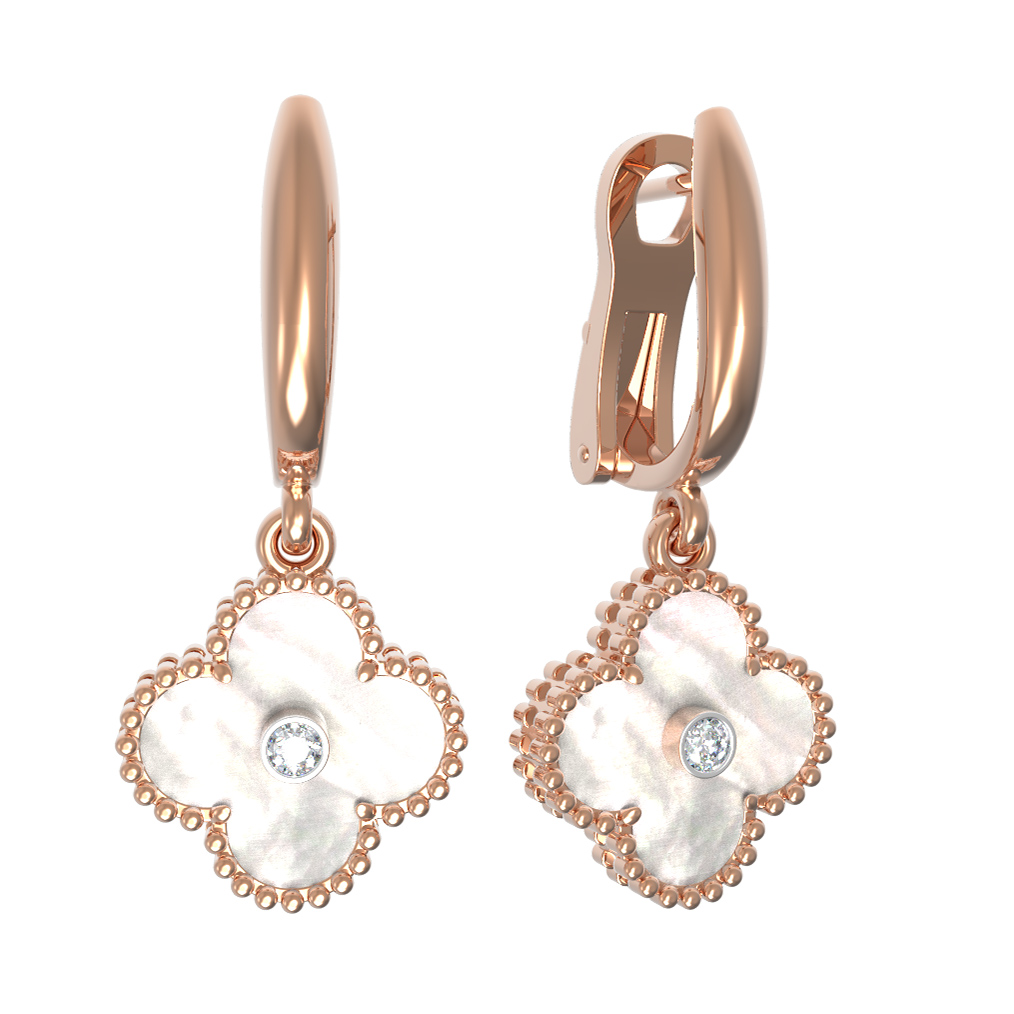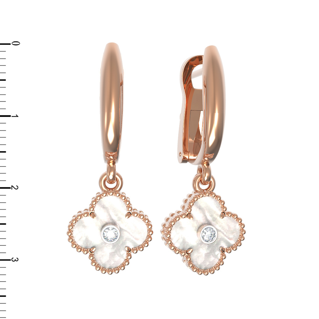Изысканные серьги из коллекции De Luxe — Клевер станут воплощением утонченного стиля в вашей ювелирной шкатулке. Выполненные из благородного красного золота 585 пробы, они притягивают взгляд своим изящным дизайном в форме четырехлистного клевера — символа удачи и гармонии. Теплый отблеск металла идеально дополняет нежное сияние вставок из перламутра, чей белый цвет придает изделию особое очарование и мягкость.