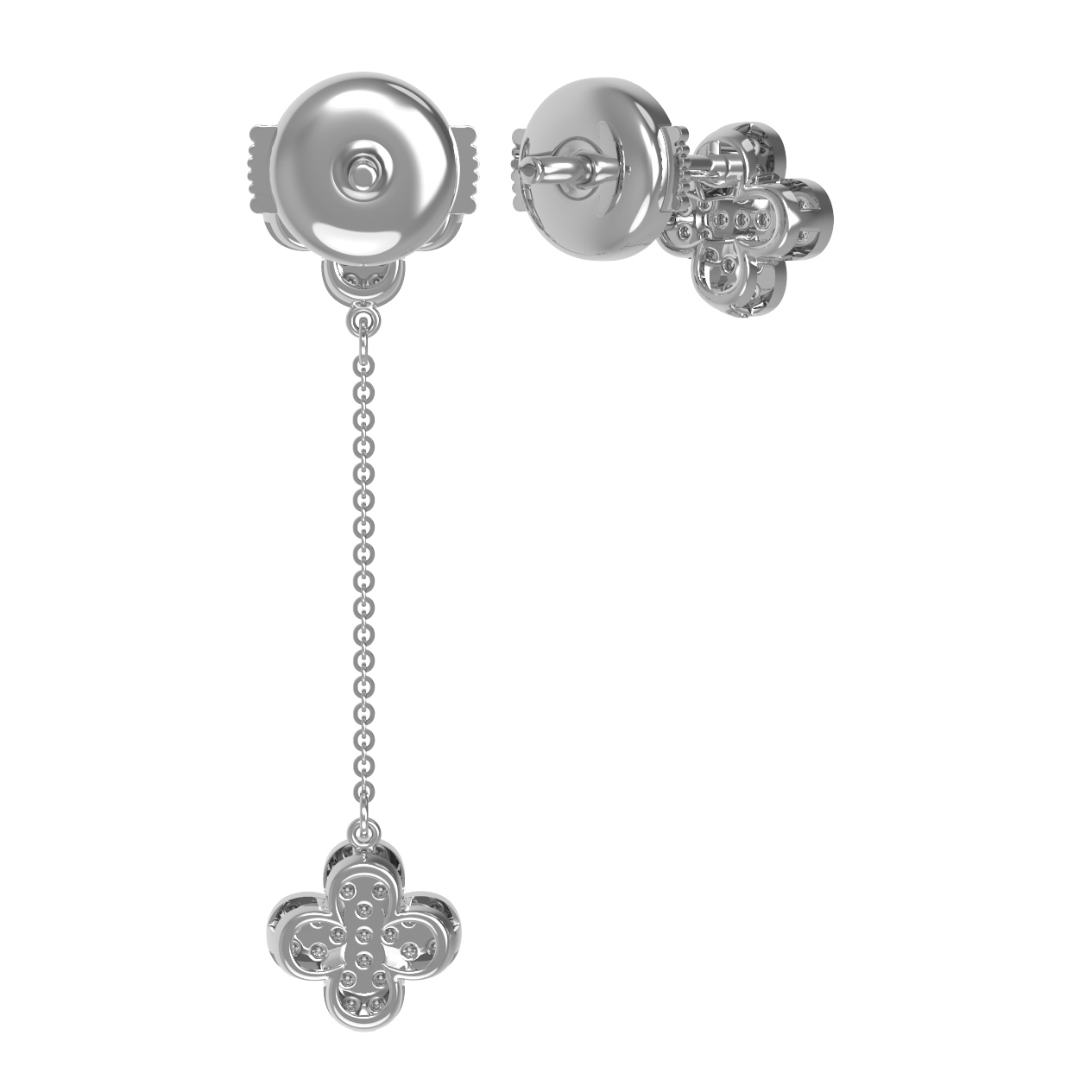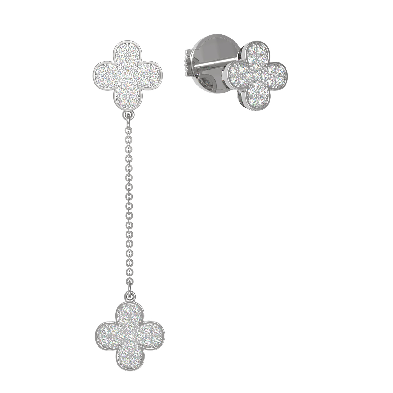 Серьги из белого золота 585 пробы из коллекции De Luxe — Клевер — это воплощение утонченного стиля и безупречного мастерства. Дизайн изделия, выполненный в форме изящного четырехлистного клевера, придает украшению особое очарование, превращая его в талисман удачи и символ гармонии. Холодный блеск белого золота идеально сочетается с мерцанием вставок, создавая глубокий и выразительный образ.