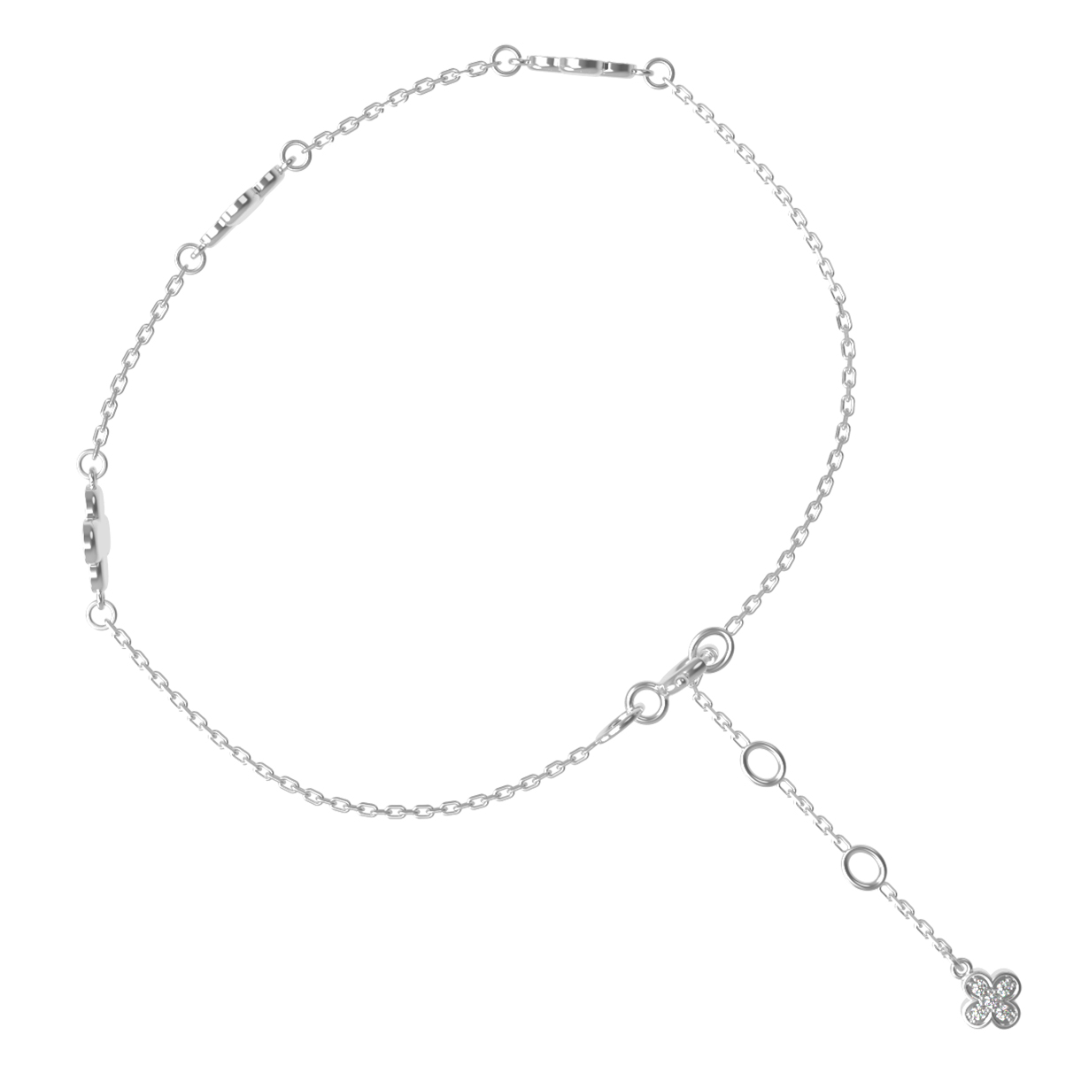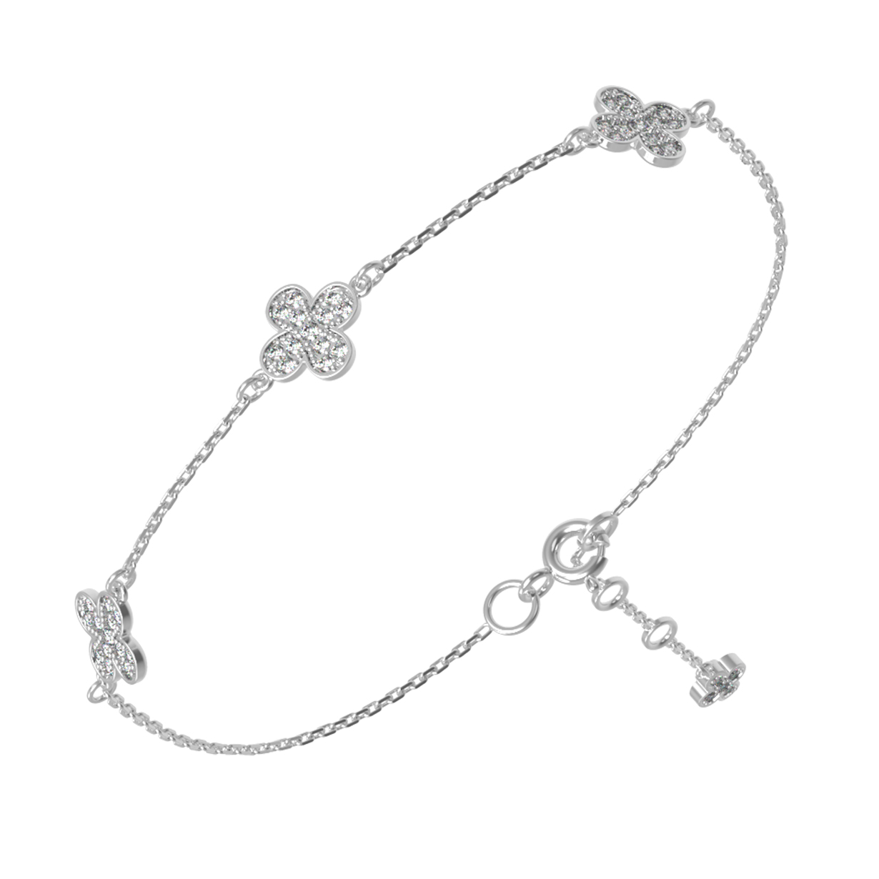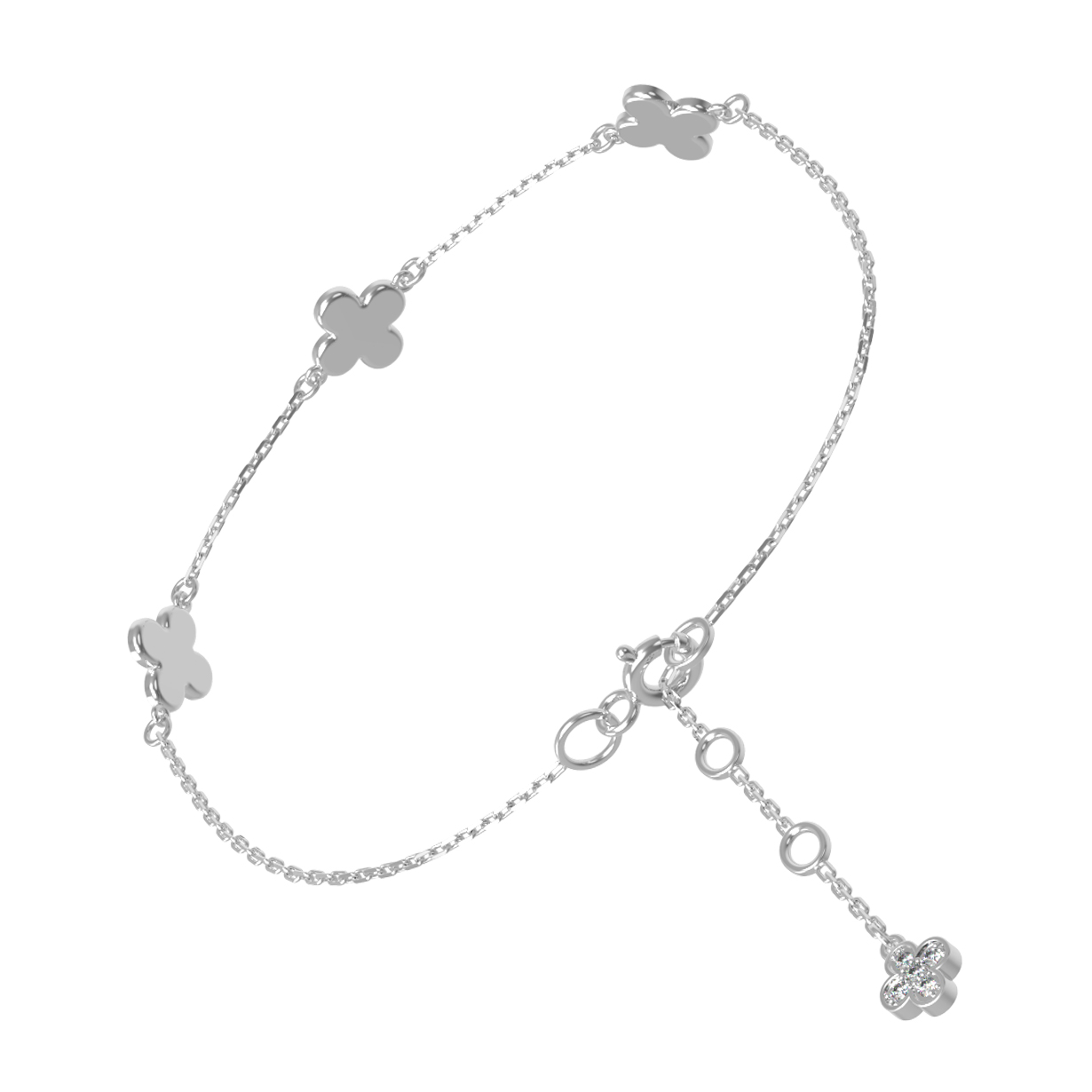 Изысканный браслет из коллекции De Luxe — Клевер станет воплощением вашего безупречного стиля. Это ювелирное изделие выполнено из благородного белого золота 585 пробы, что обеспечивает долговечность и холодный, притягательный блеск металла. Дизайн в форме клевера придает украшению особое очарование, делая его символом удачи и утонченности в вашем образе.