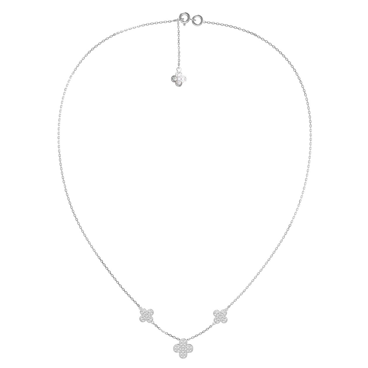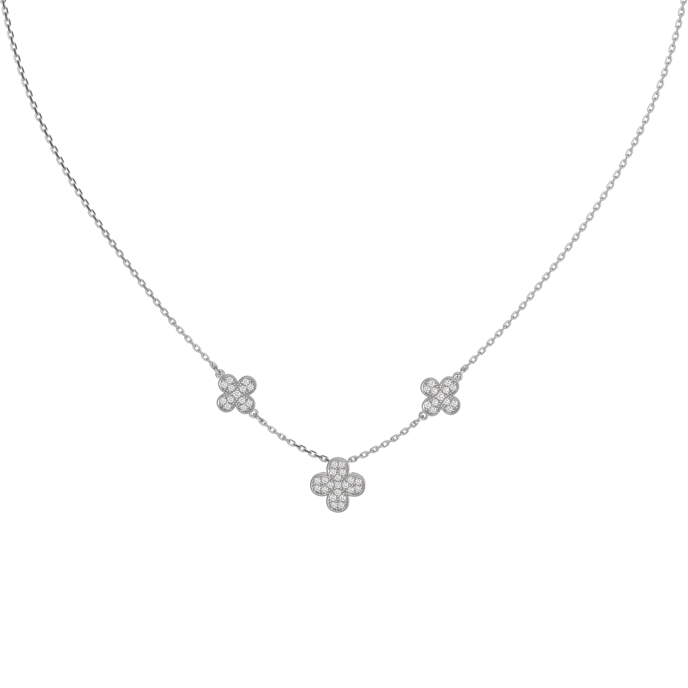 Колье из белого золота 585 пробы — воплощение утонченности и элегантности, которое станет идеальным завершением вашего образа. Это украшение из коллекции De Luxe — Клевер выполнено в изысканном дизайне в виде трех клеверов, символизирующих удачу и гармонию. Деликатная цепочка в сочетании с акцентными элементами создает неповторимый визуальный эффект, подчеркивая статус и безупречный вкус обладателя.