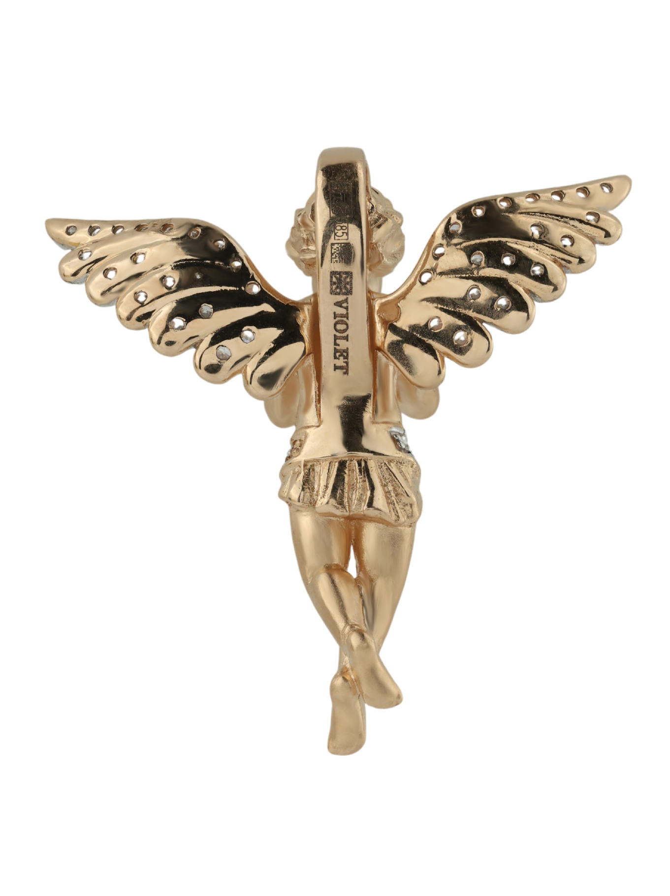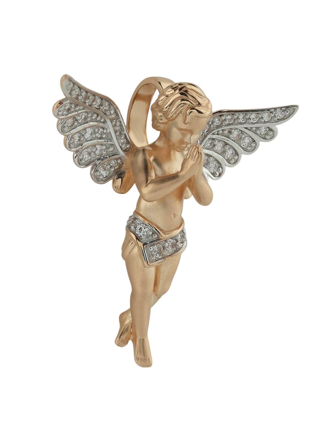 Изящная подвеска из золота с фианитом — воплощение нежности и утонченного мастерства ювелиров. Изделие выполнено из красного золота 585 пробы, которое придает украшению теплый, благородный оттенок. Дизайн украшения, представляющий собой фигурку купидона, становится центральным элементом образа, привлекая внимание своей детализацией и символизмом.