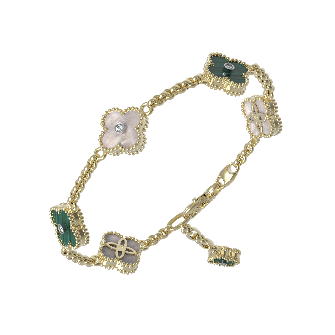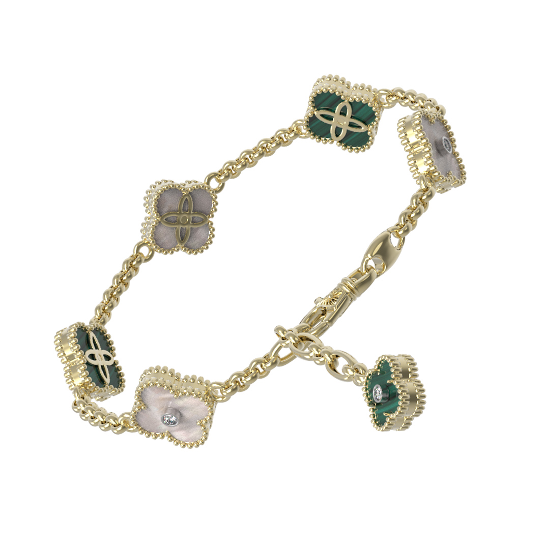 Браслет из лимонного золота c бриллиантами, малахитом и перламутром