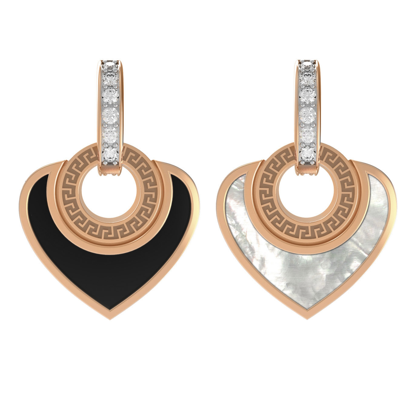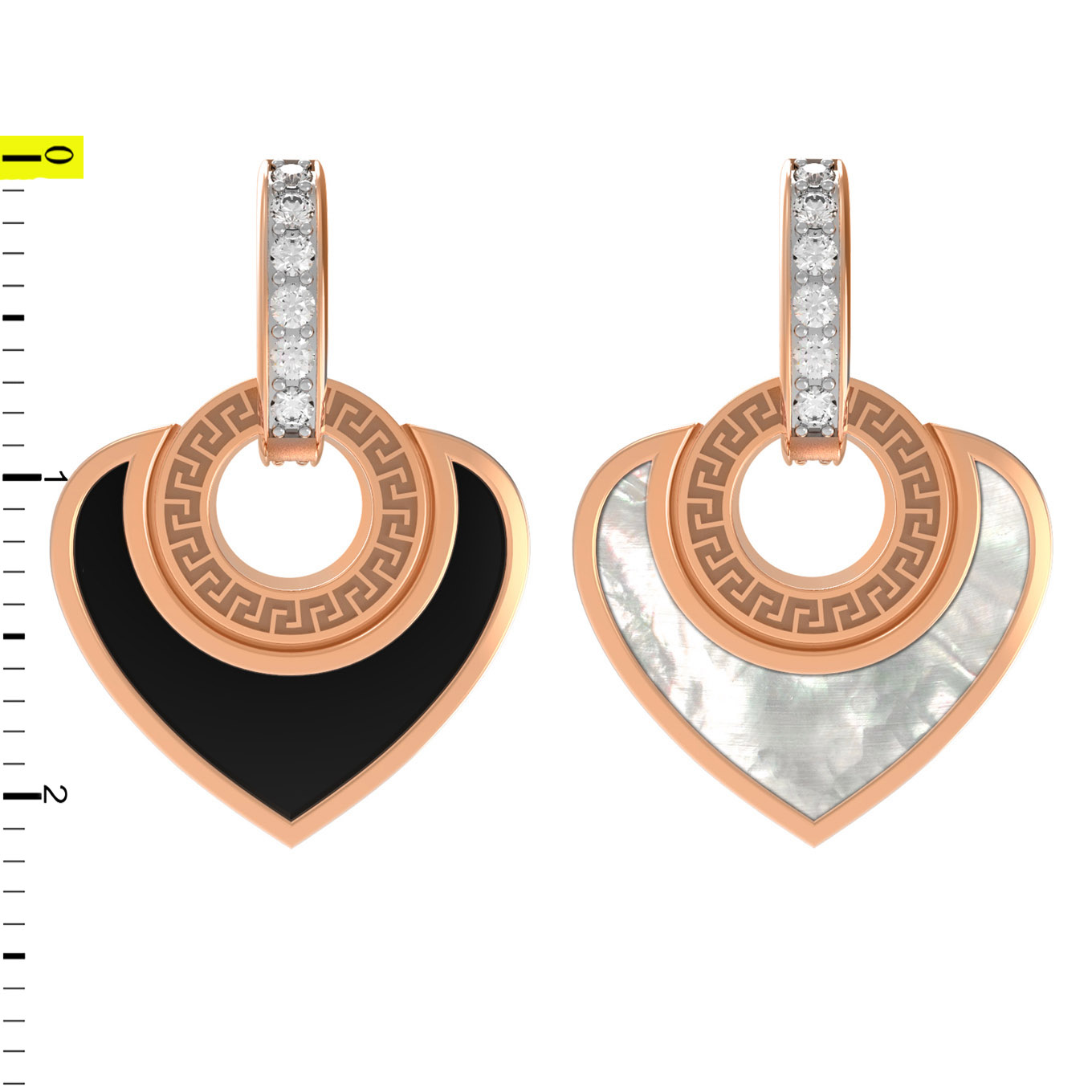 В центре композиции расположены вставки из натурального оникса черного цвета и перламутра с характерным переливом. Такое сочетание материалов делает украшение универсальным: оно одинаково эффектно смотрится как на женщинах, так и на мужчинах. Особую роскошь подвеске придает россыпь из 13 вставок фианита белого цвета, чей чистый блеск подчеркивает теплоту красного золота. Круглая и сердцевидная формы вставок гармонично дополняют друг друга, создавая завершенный и продуманный образ.