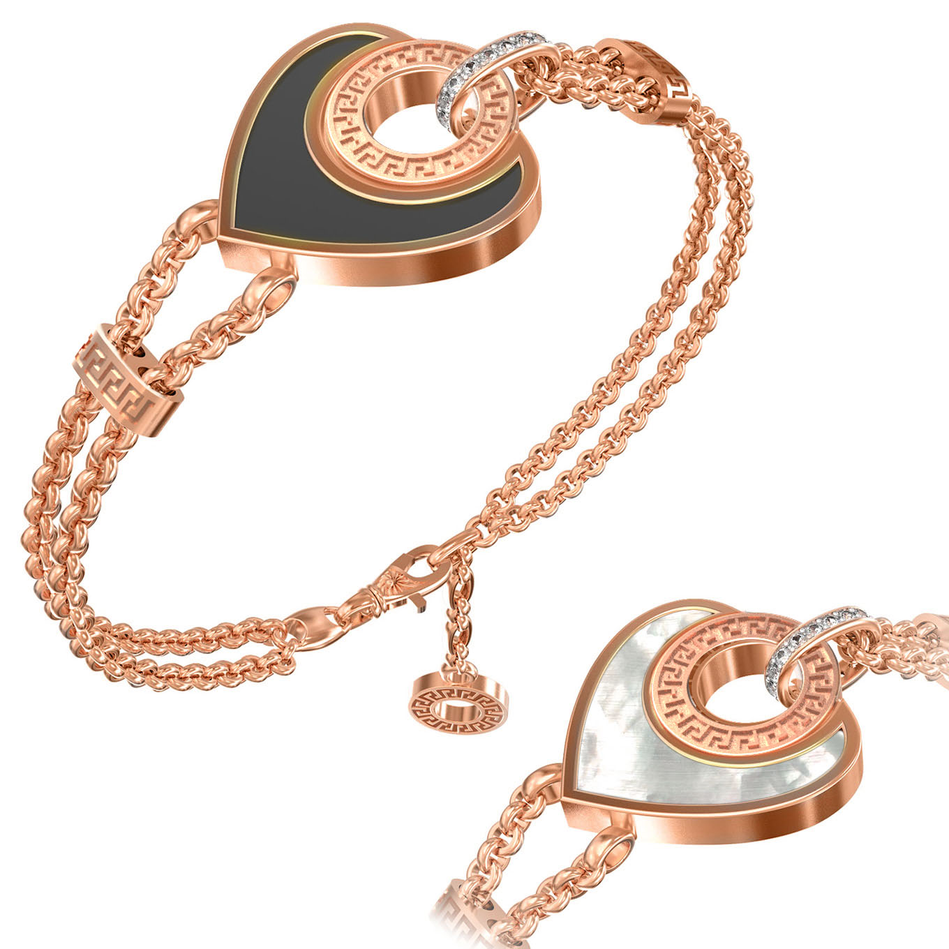Изысканный браслет из коллекции De Luxe — С любовью воплощает в себе гармонию контрастов и утонченную эстетику. Ювелирное изделие выполнено из благородного красного золота 585 пробы, которое мягко сияет на коже, подчеркивая статус и безупречный вкус своего владельца. Особое внимание в дизайне привлекает форма вставок в виде сердца, олицетворяющая нежные чувства и романтику.