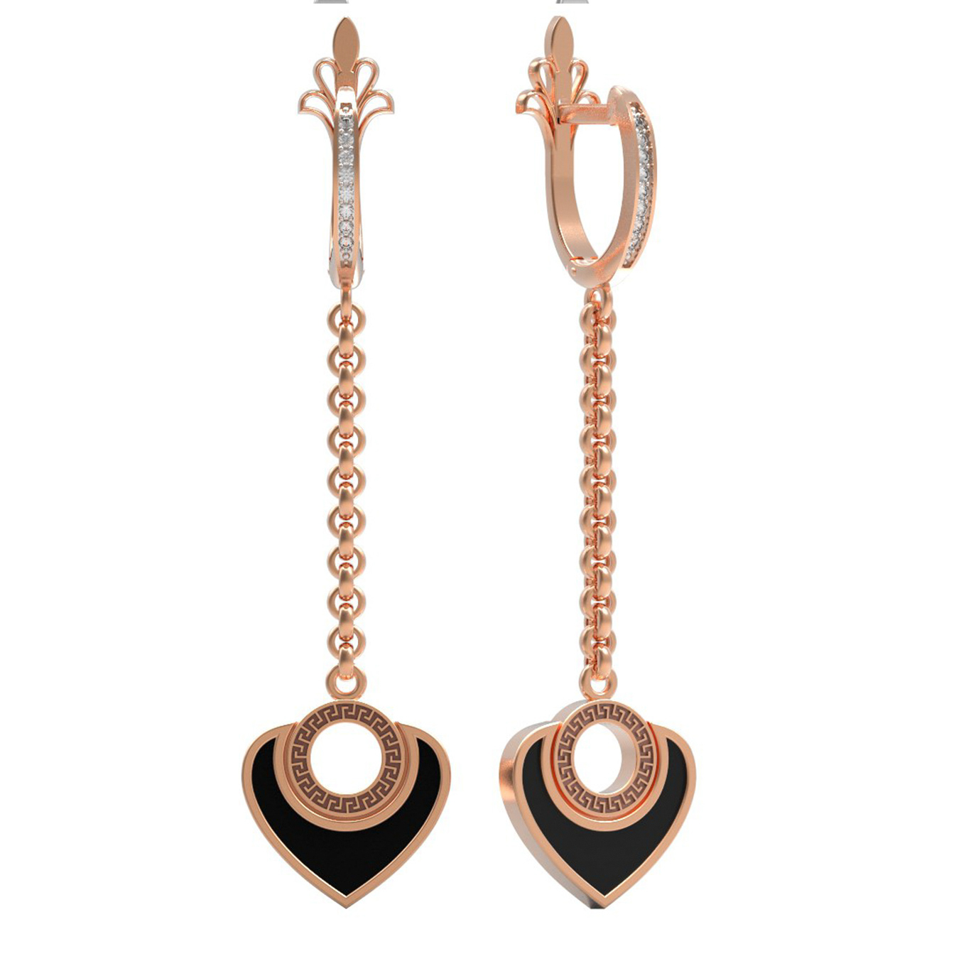 Данная модель серег отличается продуманной геометрией: подвесной элемент в виде сердца, декорированный ониксом, придает украшению особую выразительность. Эти серьги из красного золота универсальны и подходят как для женщин, так и для мужчин, предпочитающих подчеркивать свой стиль лаконичными и статусными аксессуарами. Серьги из коллекции De Luxe — С любовью великолепно смотрятся в качестве самостоятельного акцента или как часть гармоничного комплекта. Выбирая эти ювелирные изделия, вы делаете ставку на классическое сочетание материалов и качественное исполнение.
