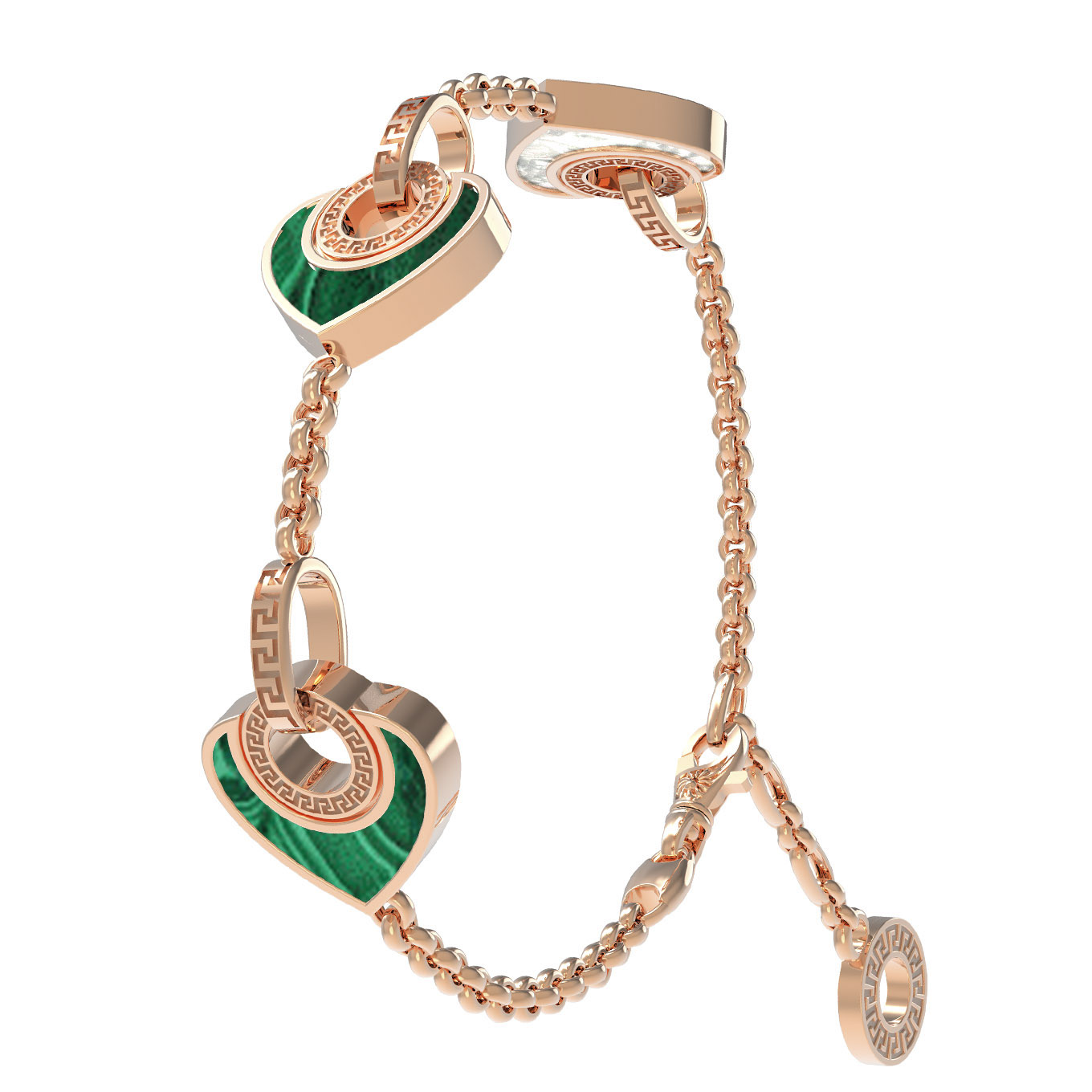 Этот универсальный аксессуар подходит как для женщин, так и для мужчин, предпочитающих утонченные детали в ювелирных украшениях. Тщательно проработанная форма сердец и качественная работа с драгоценными материалами превращают этот браслет в украшение, которое хочется носить ежедневно. Изделие органично дополнит ваш ювелирный гардероб, а также прекрасно сочетается с другими аксессуарами, позволяя создавать полноценные комплекты. Выбирая золотой браслет с малахитом и перламутром, вы приобретаете ювелирное изделие, сочетающее в себе классическое мастерство и современные эстетические тренды.