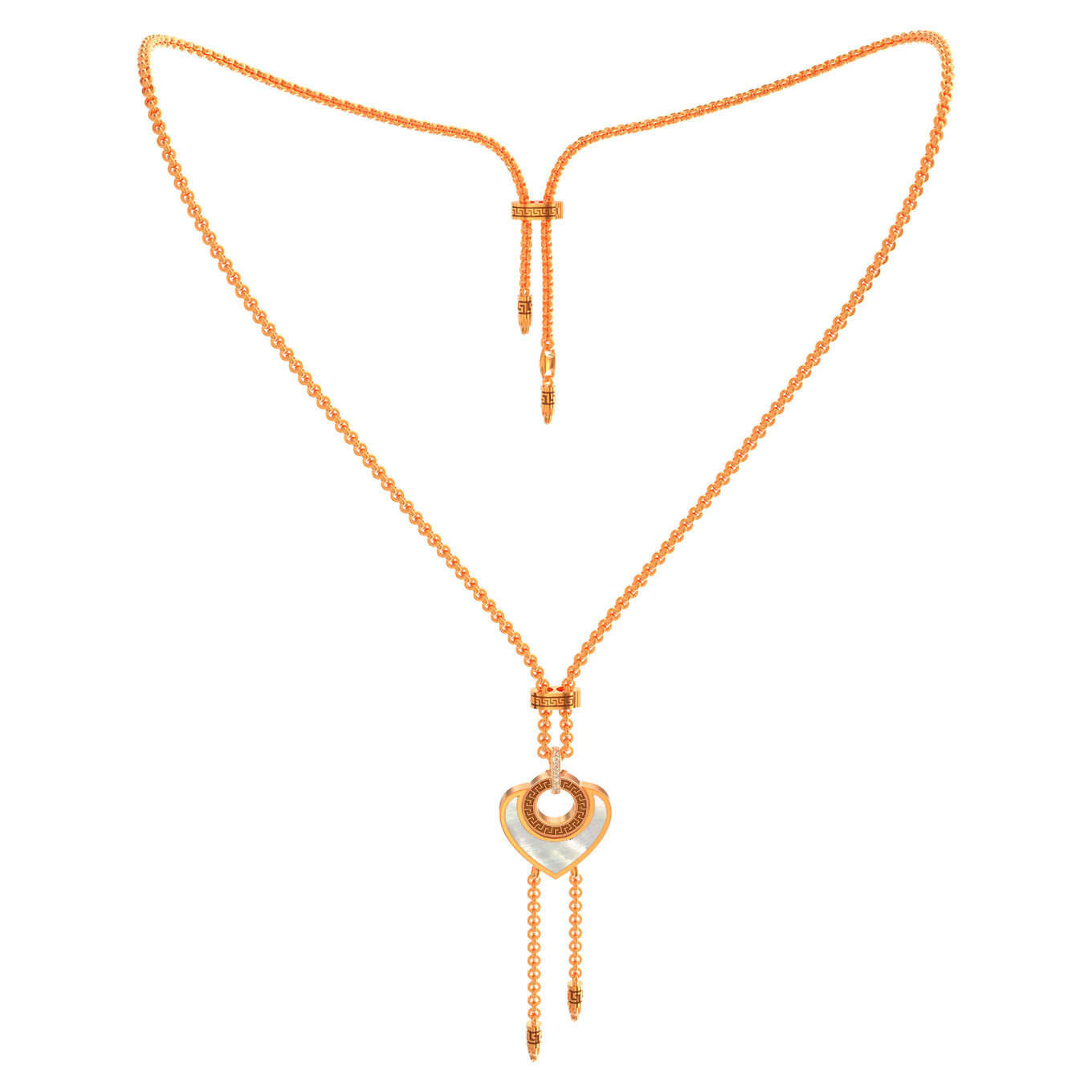 Это универсальное изделие подходит как для женщин, так и для мужчин, позволяя создавать уникальные стилистические решения. Качественное красное золото подчеркивает благородство материалов и долговечность украшения. Лаконичная, но эффектная форма вставок круглой и сердцевидной огранки делает данное колье статусным аксессуаром, который добавит акцент в ваш гардероб. Данная модель также входит в категорию комплектов, что позволяет подобрать гармоничное дополнение к вашему образу. Изящное колье станет великолепным подарком для ценителей эксклюзивных ювелирных решений, сочетающих в себе мастерство исполнения и безупречный стиль.