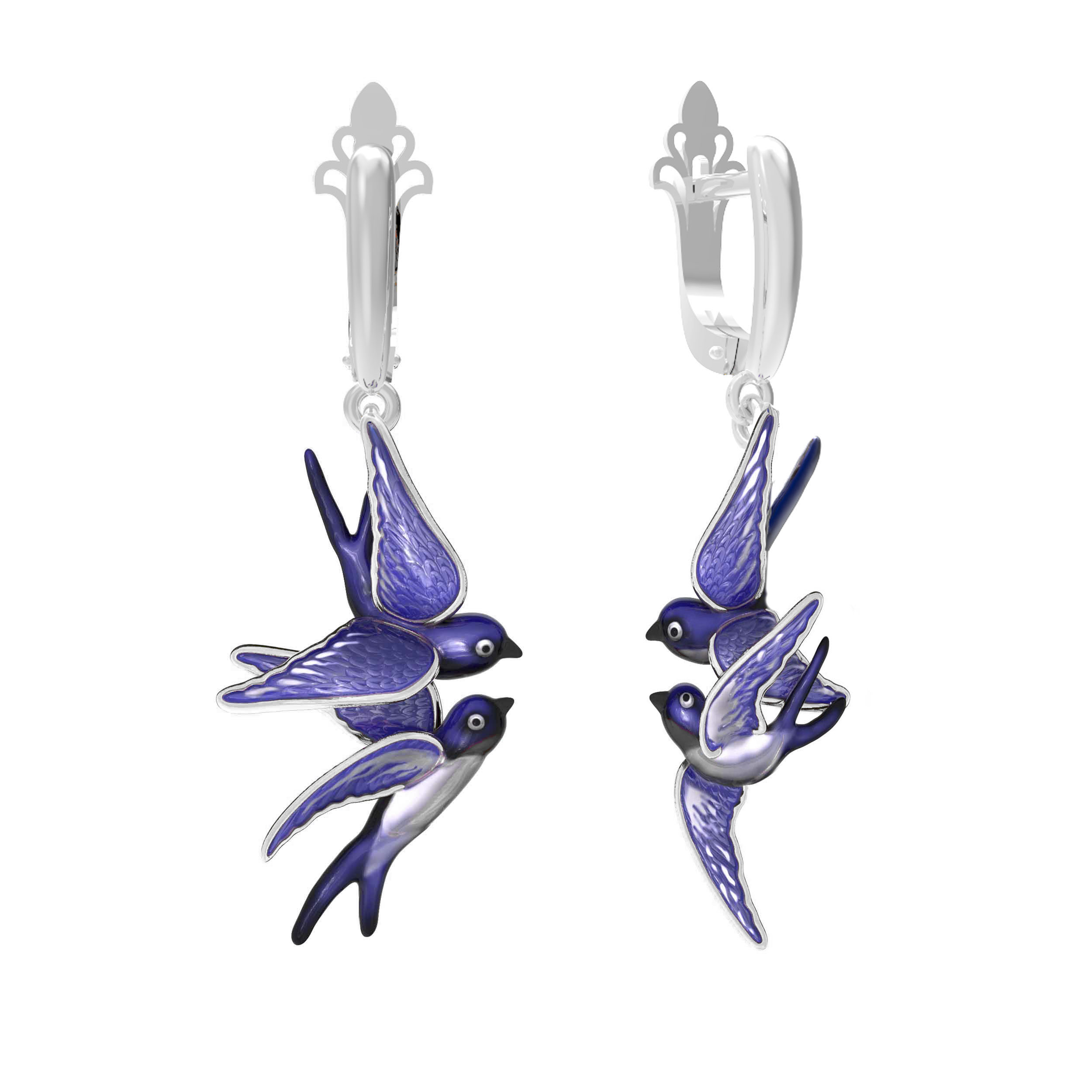 Эти изысканные серьги из белого золота 585 пробы станут ярким акцентом в вашем образе, подчеркивая индивидуальность и безупречный вкус. Дизайн изделия выполнен в оригинальной тематике: миниатюрные фигурки птиц — ласточек — грациозно парят, создавая ощущение легкости и свободы. Такой аксессуар идеально дополняет коллекцию De Luxe — Ласточки, воплощая собой мастерство ювелирного искусства.