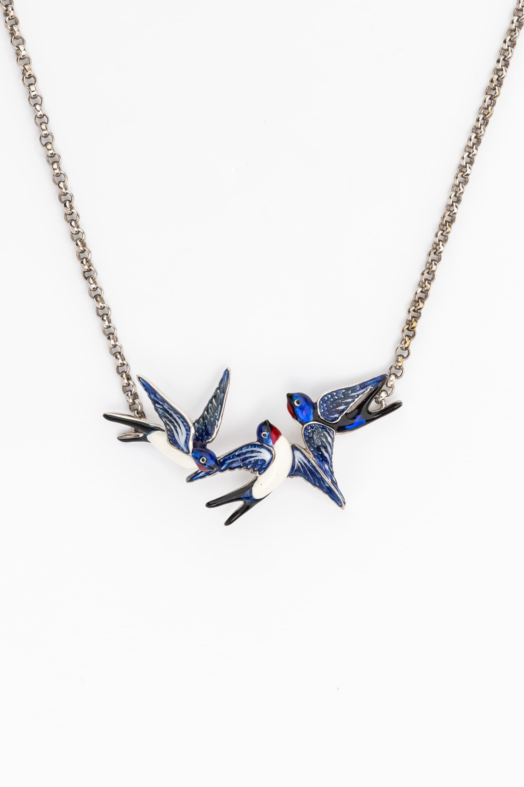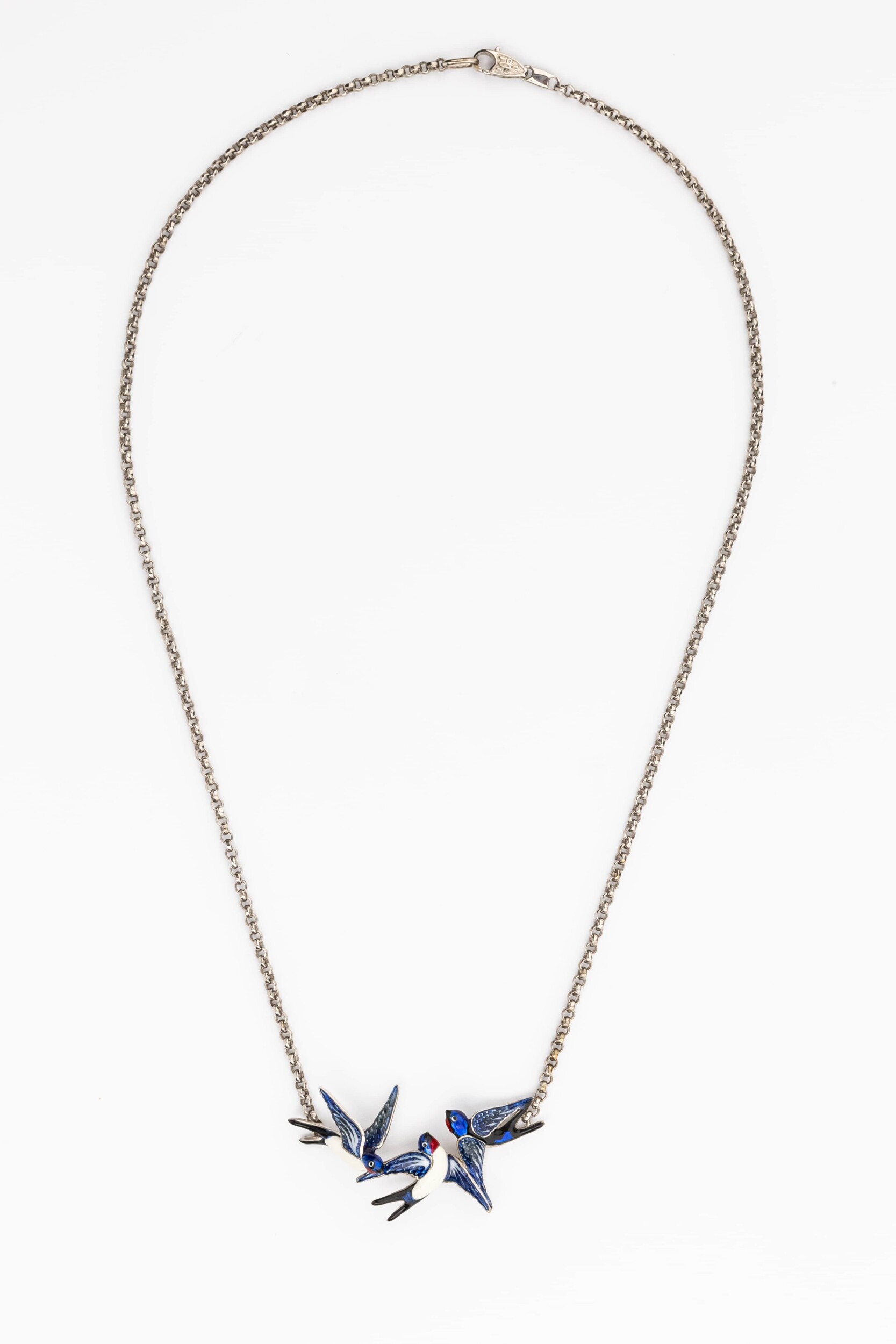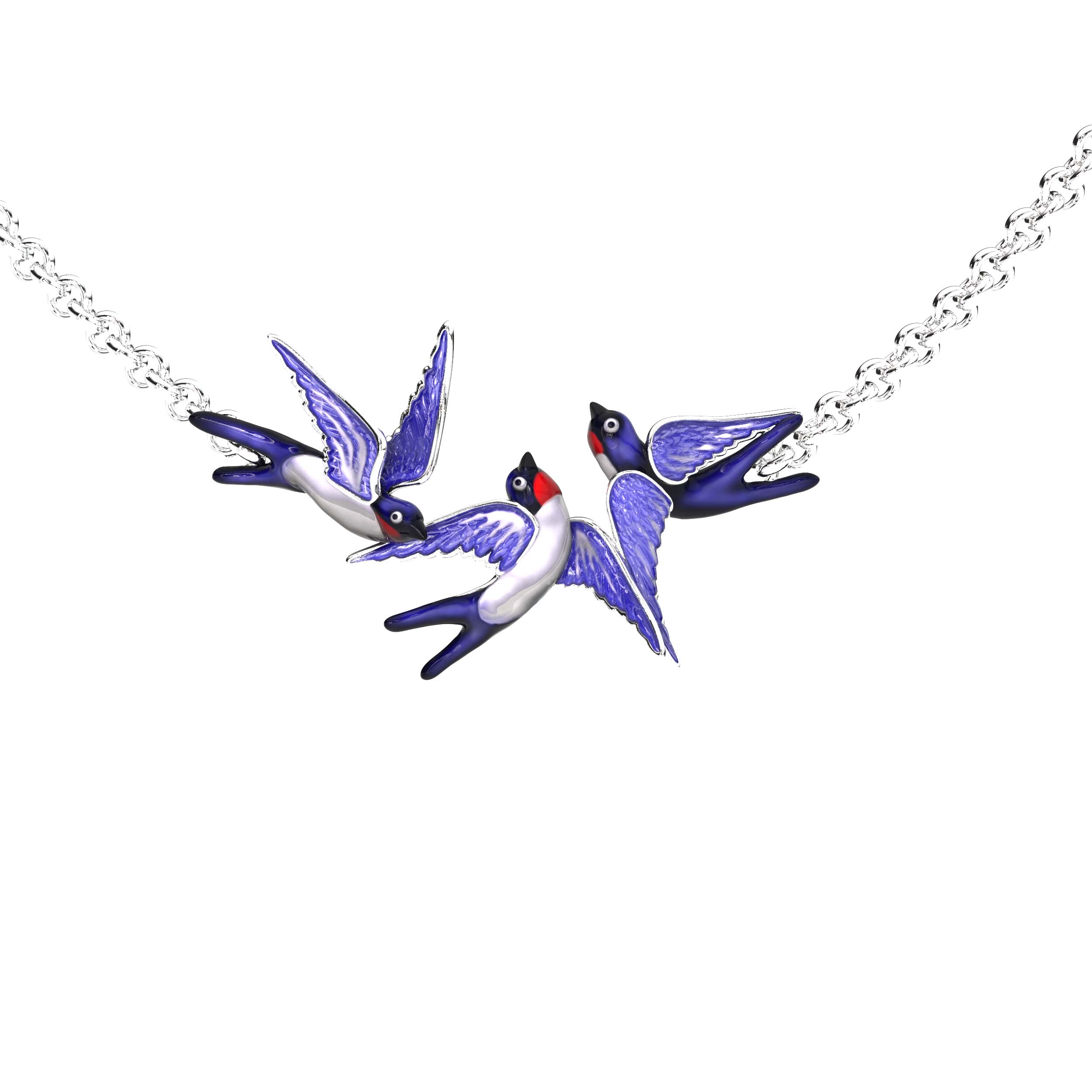 Для создания этого изделия использована качественная разноцветная эмаль, которая наносится вручную, придавая перьям ласточек глубину и насыщенный оттенок. Белое золото идеально гармонирует с эмалевым покрытием, создавая современный и стильный контраст. Это украшение станет великолепным дополнением вашего образа, подчеркивая индивидуальность и вкус своего обладателя.