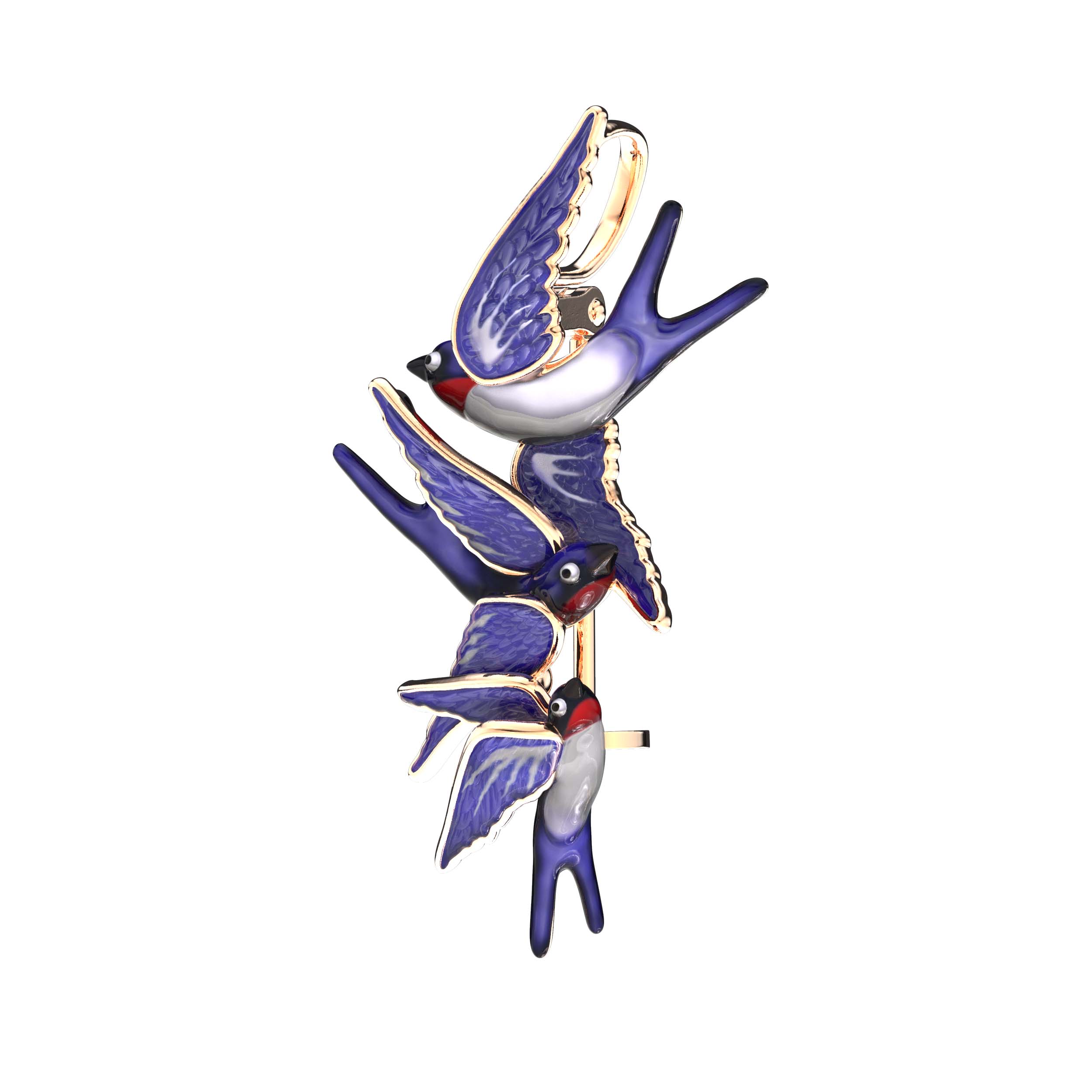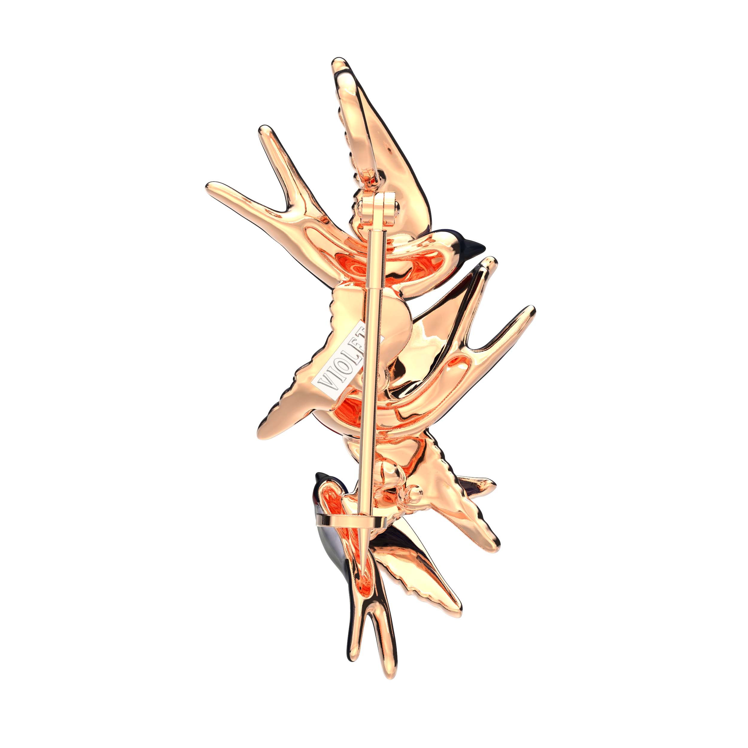 Эта изысканная брошь из коллекции De Luxe — Ласточки станет ярким акцентом вашего образа, подчеркивая безупречный вкус и любовь к утонченным ювелирным украшениям. В центре композиции — грациозные птицы, выполненные с удивительной детализацией. Ювелиры воплотили в дизайне образ ласточек, которые будто замерли в полете, создавая ощущение легкости и динамики. Данная модель выполнена из красного золота 585 пробы, чей теплый благородный оттенок гармонично сочетается с искусным декором.