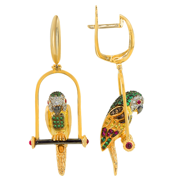 Серьги из лимонного золота 585 пробы из коллекции De Luxe — Попугаи — это настоящее произведение ювелирного искусства, созданное для тех, кто ценит смелые и оригинальные решения в образе. Дизайн изделия приковывает взгляд своей детализацией: миниатюрные фигурки попугаев, выполненные с филигранной точностью, будто замерли в момент отдыха. Лимонный оттенок золота придает украшению благородное сияние, которое подчеркивает экзотическую эстетику модели.