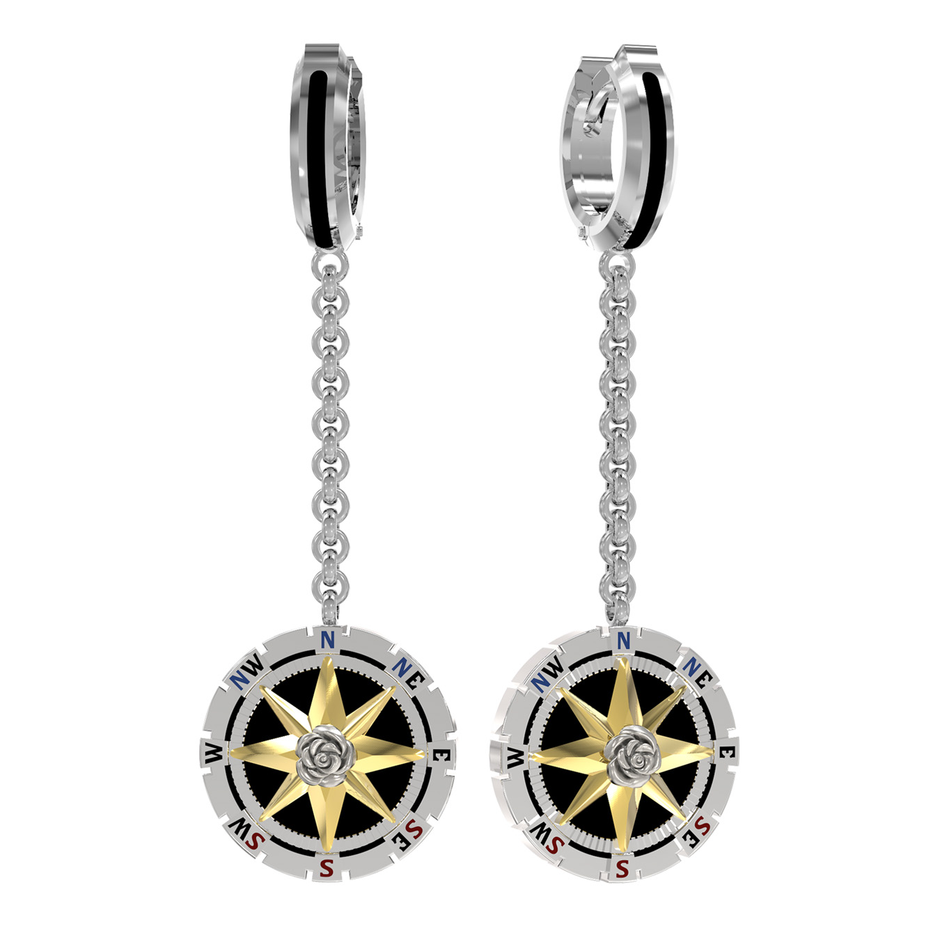 Откройте для себя воплощение стиля и мастерства в изысканных серьгах из белого золота 585 пробы. Это украшение из серии De Luxe — Роза ветров создано для тех, кто ценит уникальный дизайн и безупречное качество. Ювелирная композиция построена вокруг оригинальной идеи — дизайна в виде розы ветров, объединяющего в себе классическую эстетику и современные тренды. В центре каждой серьги расположена изящная деталь в форме розы, придающая изделию особый шарм и глубину.