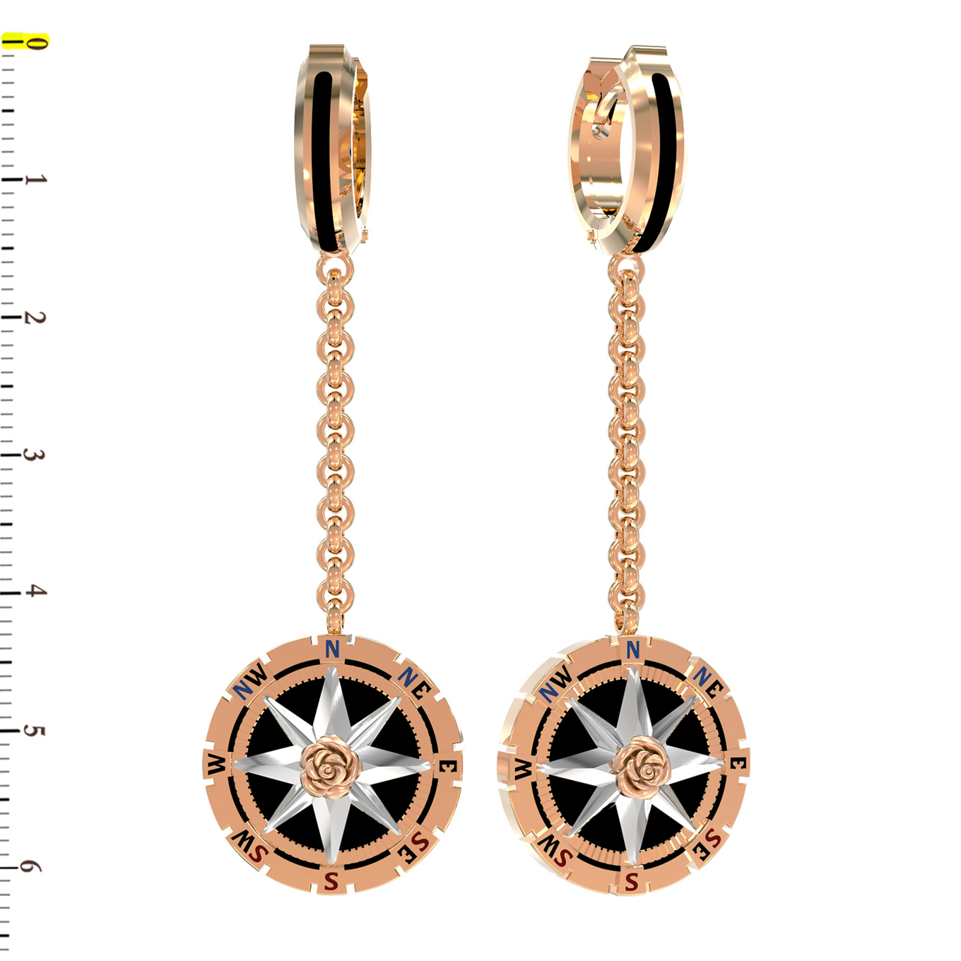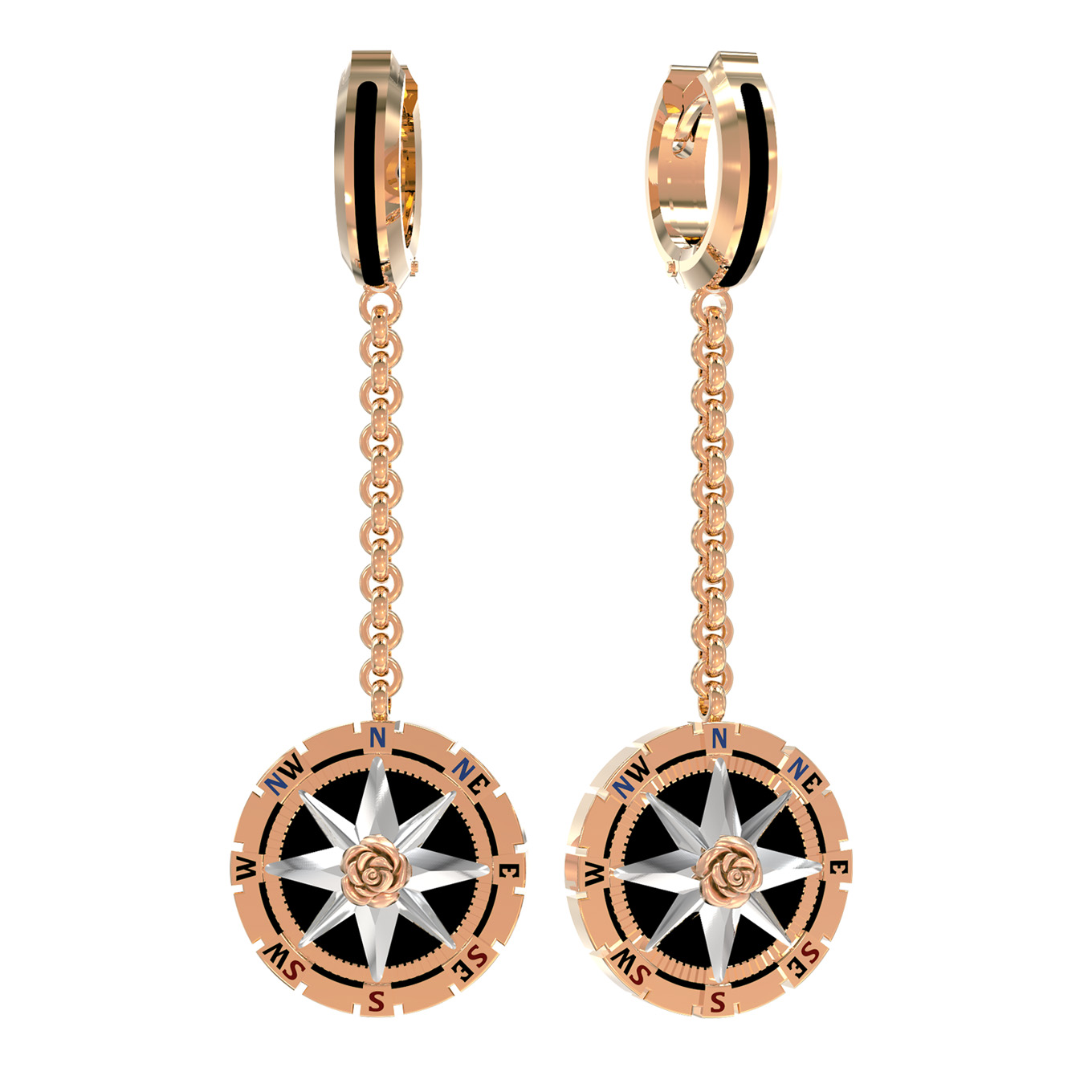 Элегантные и выразительные серьги из коллекции De Luxe — Роза ветров станут ярким акцентом вашего образа, подчеркивая безупречный вкус и тягу к приключениям. Это украшение выполнено из благородного красного золота 585 пробы, что обеспечивает изделию долговечность и благородный теплый оттенок. Изящный дизайн, вдохновленный символикой розы ветров, превращает аксессуар в настоящий арт-объект, который приковывает взгляды своей детализацией и оригинальным сочетанием материалов.