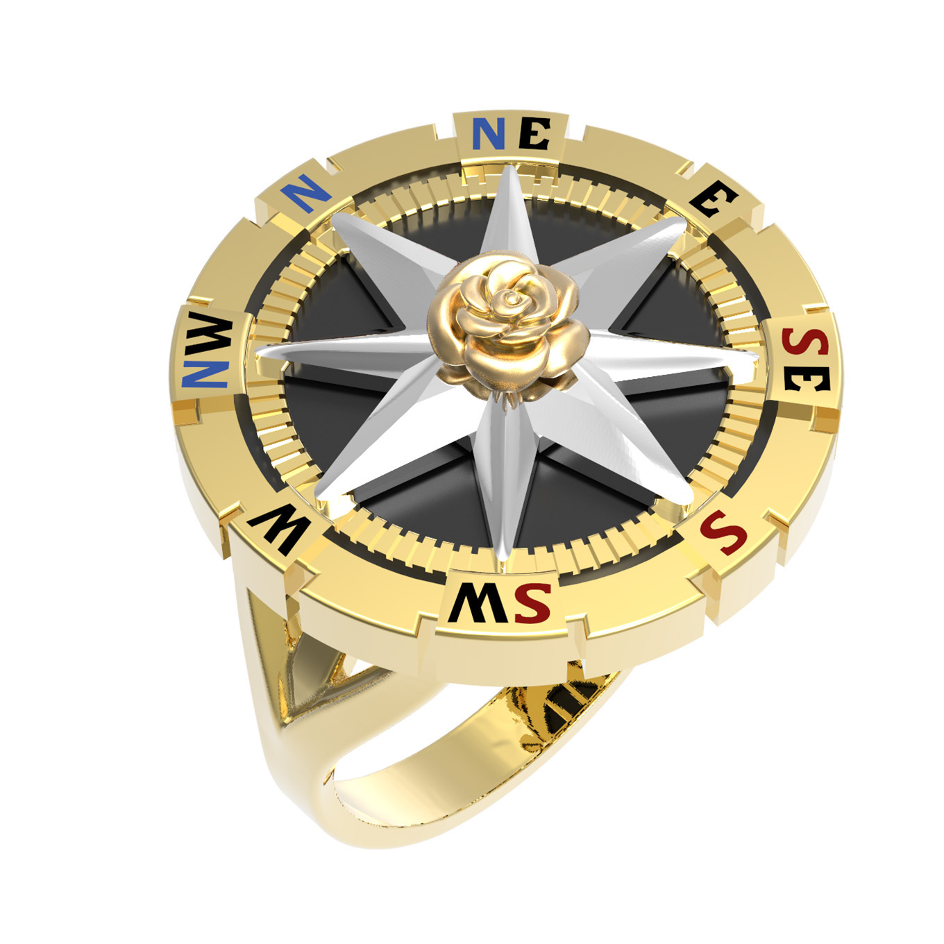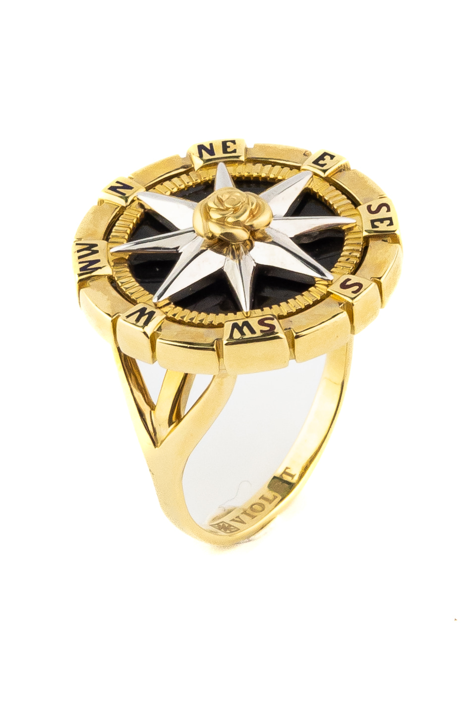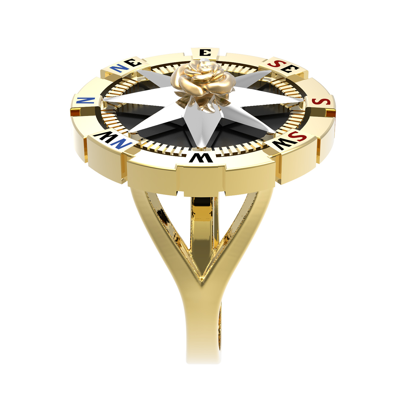 Кольцо из лимонного золота 585 пробы из коллекции De Luxe — Роза ветров — это выразительное ювелирное изделие, сочетающее в себе символизм и безупречный стиль. Дизайн аксессуара вдохновлен темой розы ветров, что придает украшению глубокий философский смысл поиска своего пути и верности ориентирам. В центре композиции расположена изящная объемная роза, которая гармонично дополняет строгую геометрическую форму изделия.