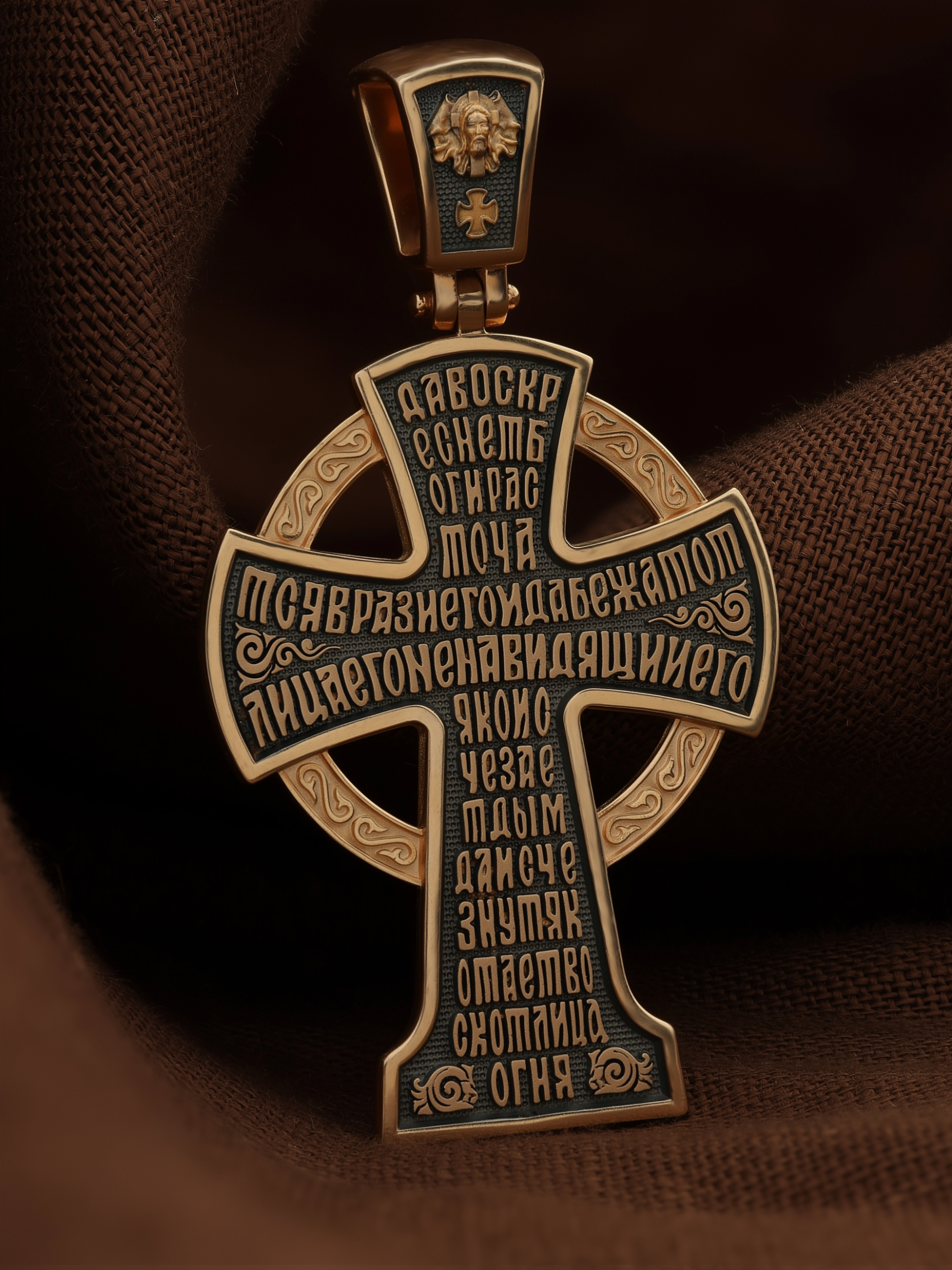 На обороте написан начальный стих оградительной молитвы Честному Кресту Господню: «Да воскреснет Бог, и расточатся врази Его, и да бежат от лица Его ненавидящии Его. Яко исчезает дым, да исчезнут; яко тает воск от лица огня, тако да погибнут беси от лица любящих Бога и знаменующихся крестным знамением, и в веселии глаголющих: радуйся, Пречестный и Животворящий Кресте Господень, прогоняй бесы силою на тебе пропятаго Господа нашего Иисуса Христа, во ад сшедшаго и поправшаго силу диаволю, и даровавшаго нам тебе Крест Свой Честный на прогнание всякаго супостата. О, Пречестный и Животворящий Кресте Господень! Помогай ми со Святою Госпожею Девою Богородицею и со всеми святыми во веки. Аминь».