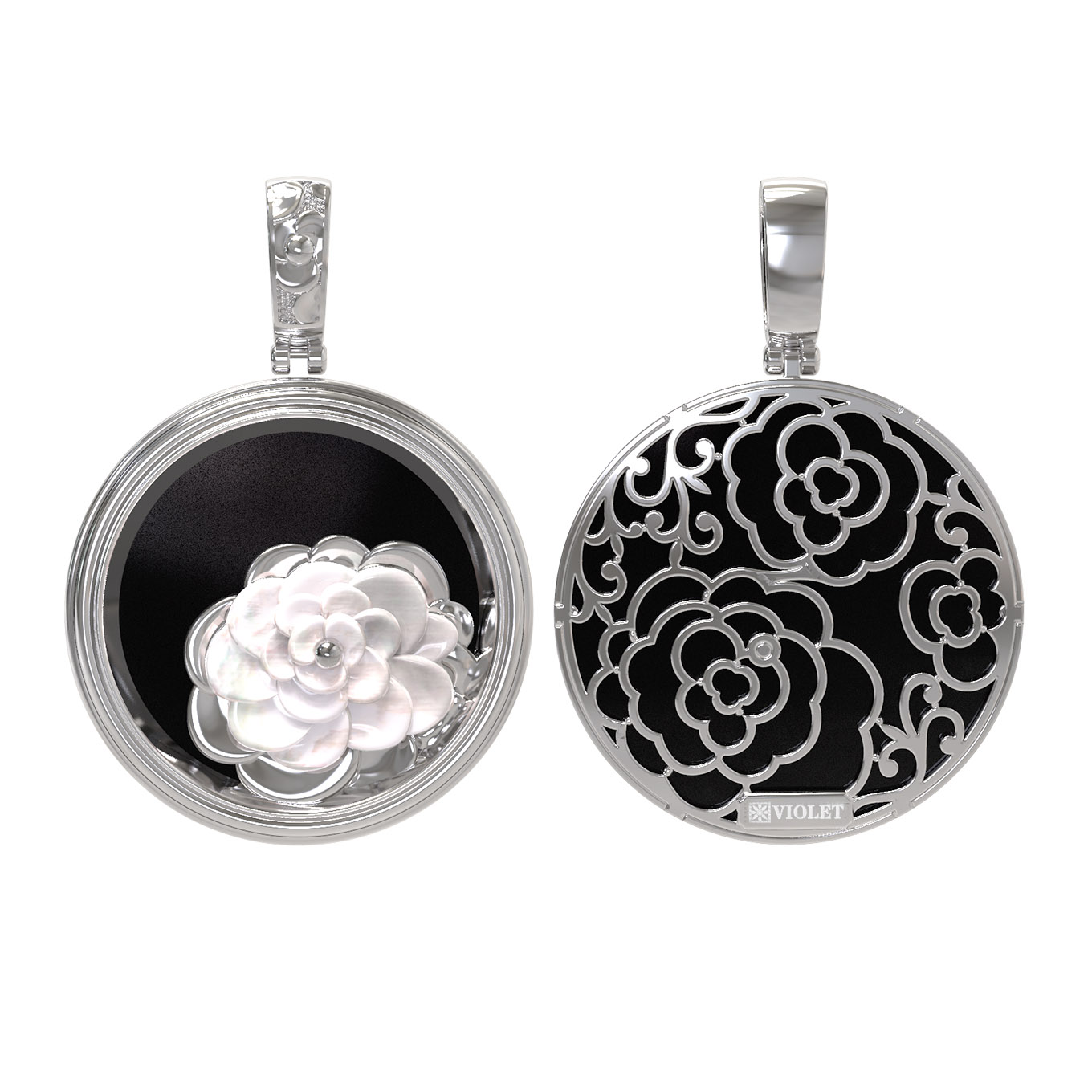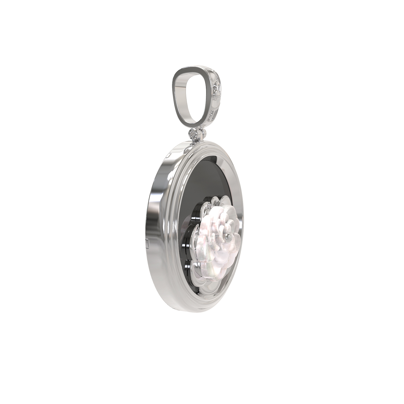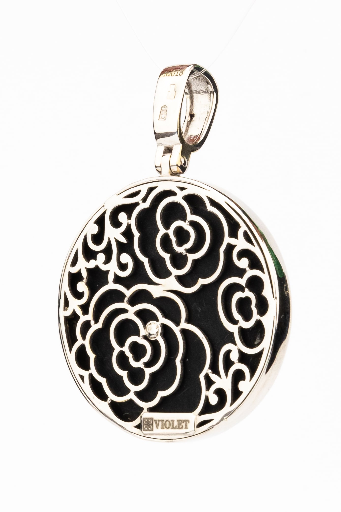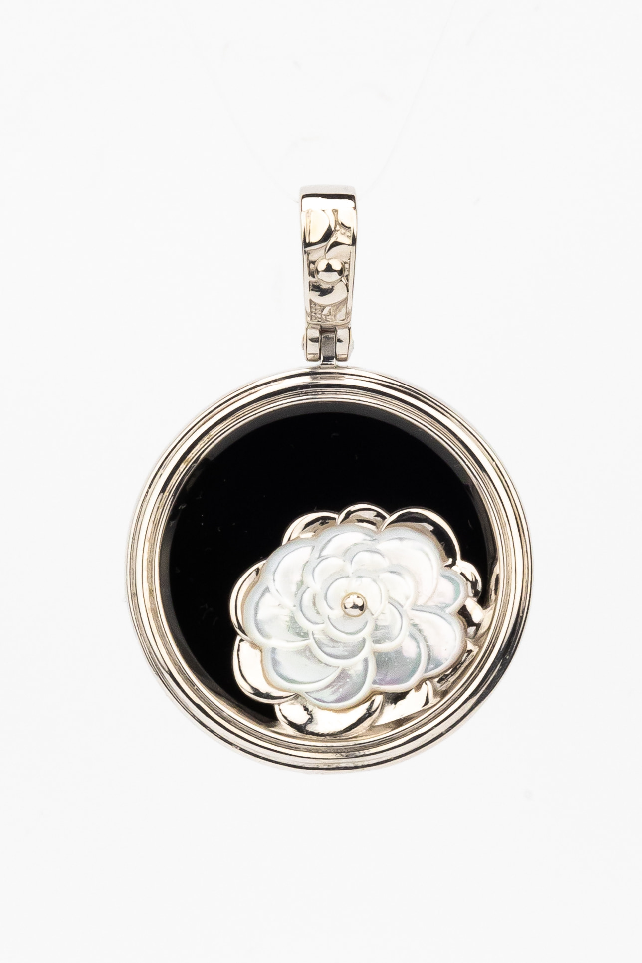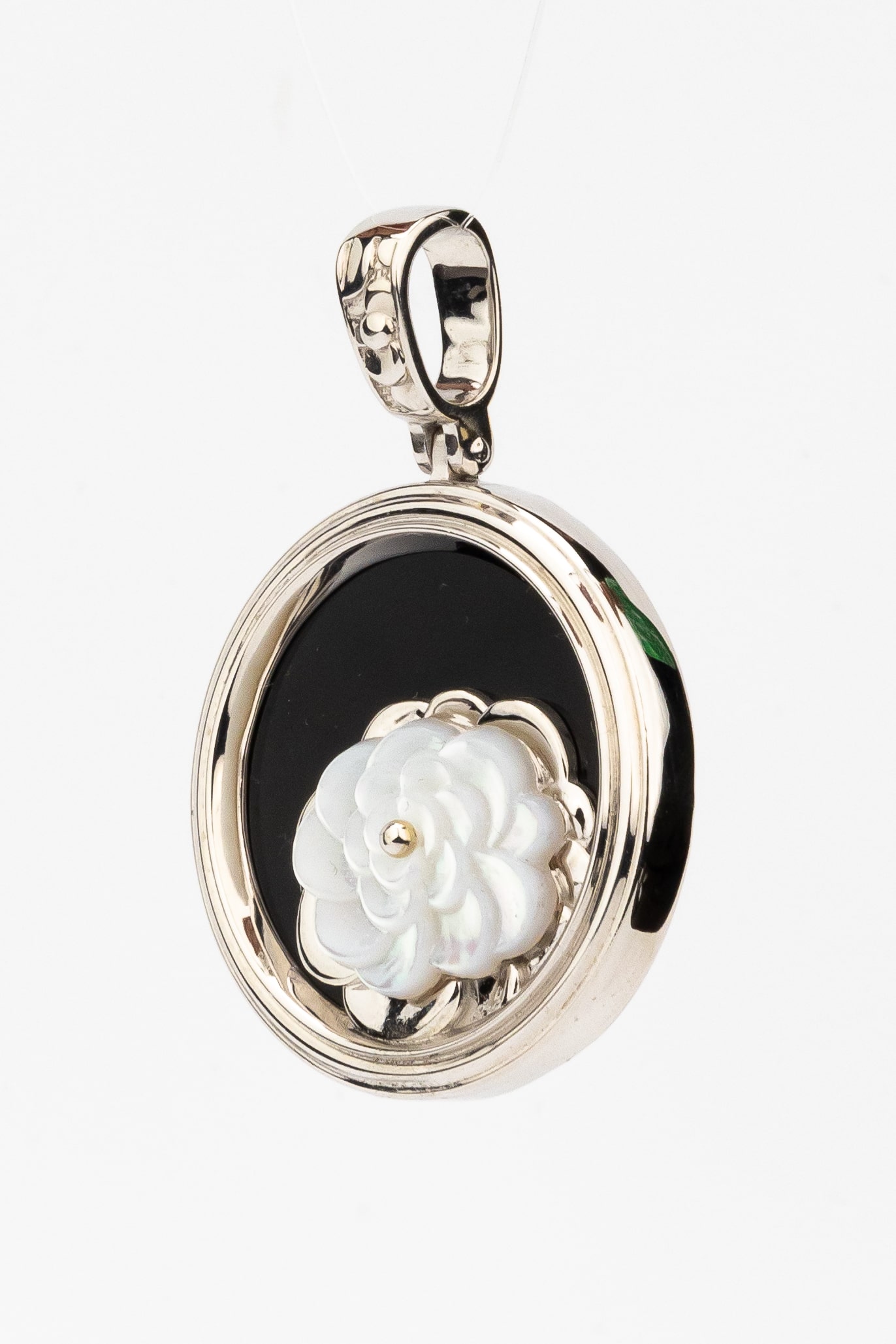 Подвеска из белого золота c ониксом и перламутром
