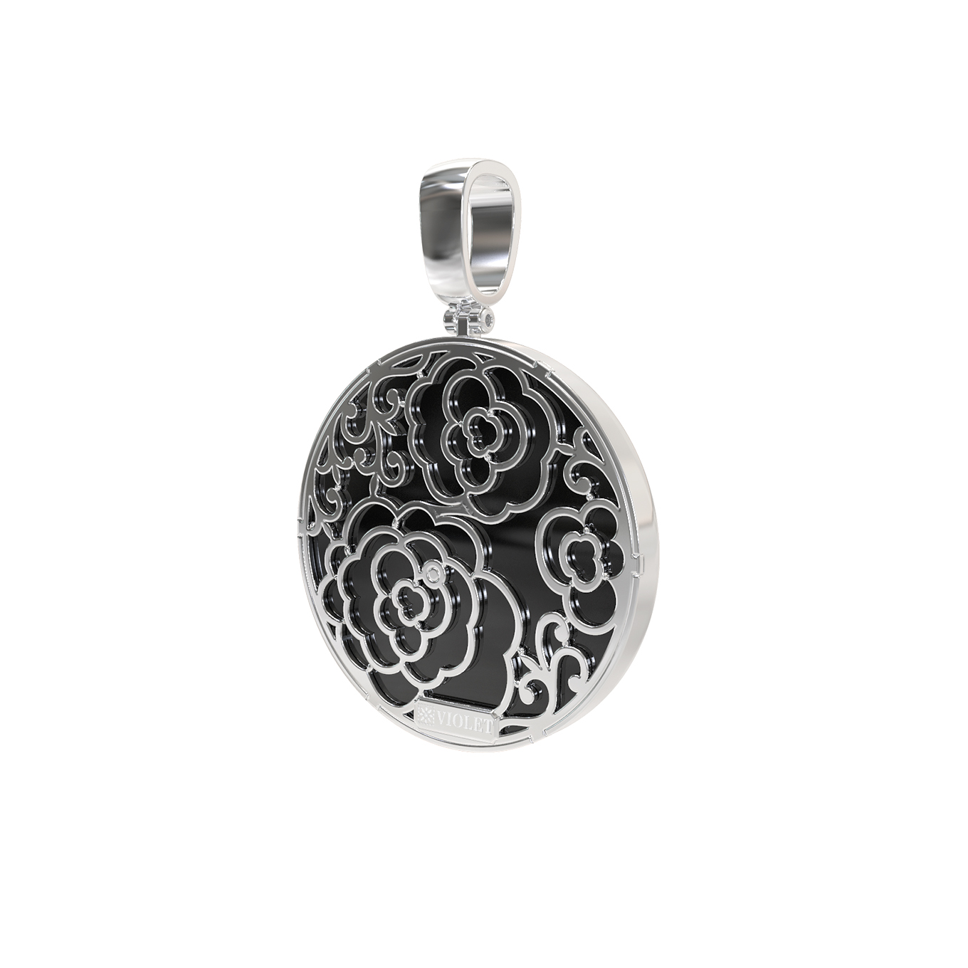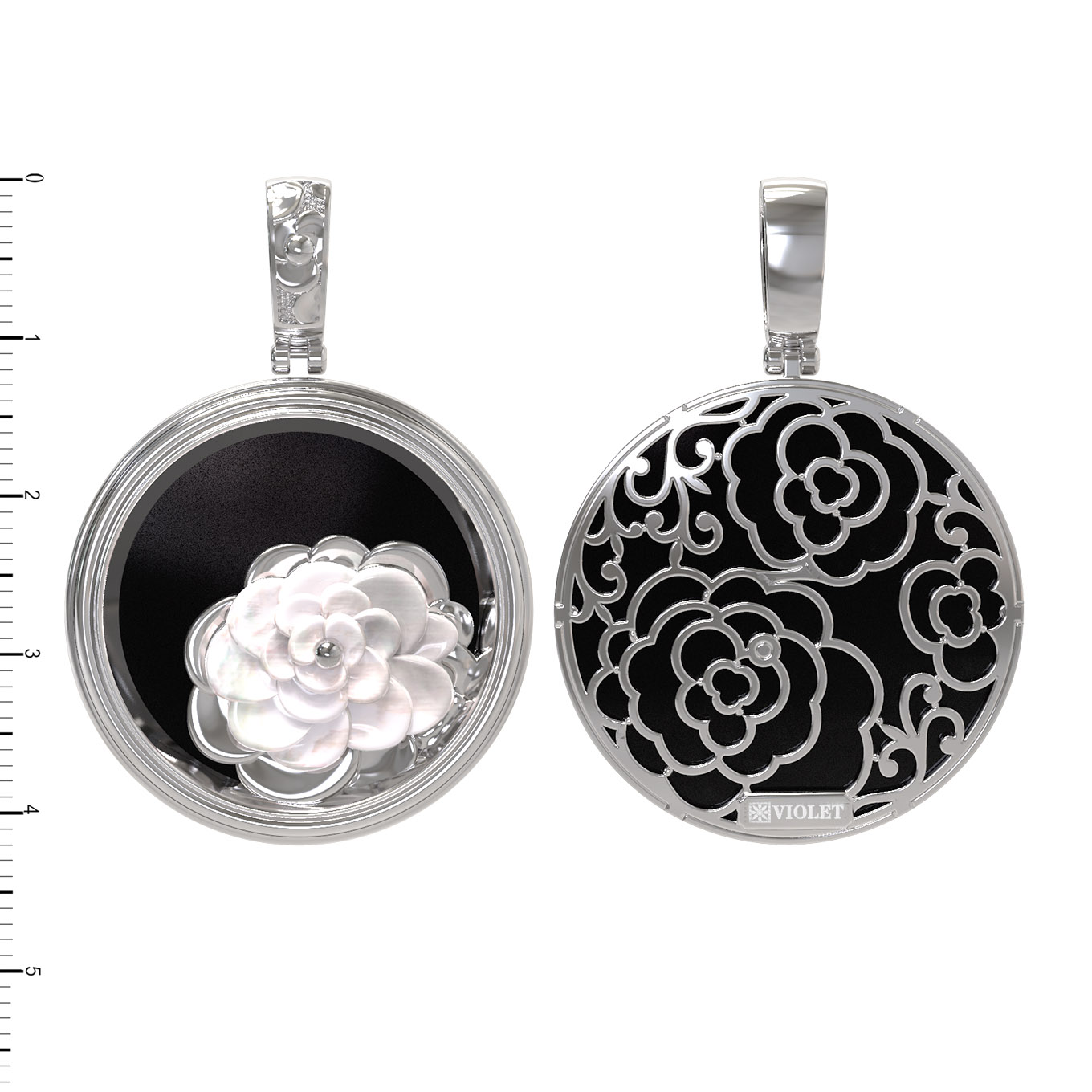 Центральным элементом композиции выступает выразительная вставка из перламутра, чей мягкий перелив создает неповторимую игру света, на фоне глубокого черного оникса. Такое сочетание цветов — классика, которая всегда выглядит актуально и дорого. Детально проработанные элементы в виде роз придают украшению особый шарм, делая его центральным акцентом вашего образа.