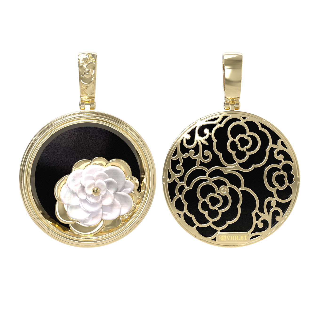 Подвеска из лимонного золота c ониксом и перламутром