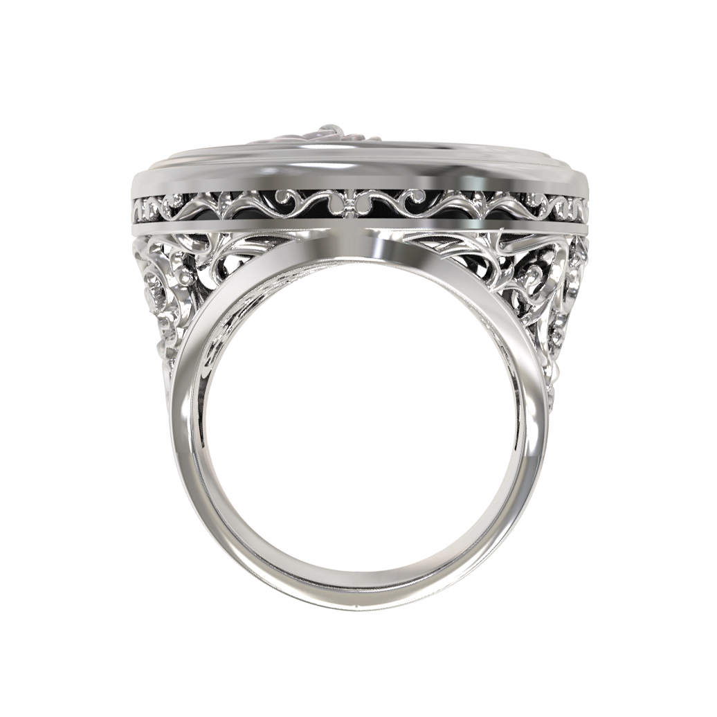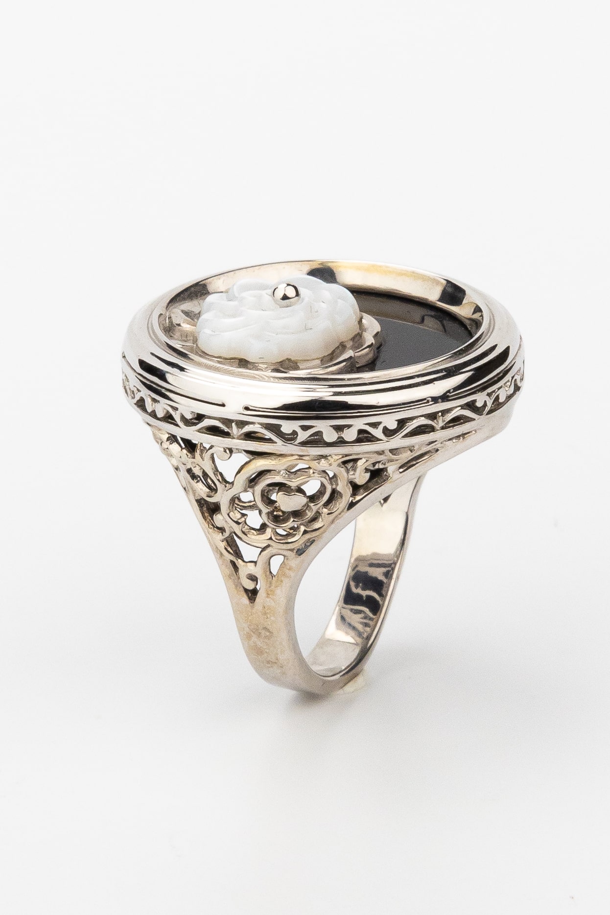 Кольцо из белого золота c ониксом и перламутром