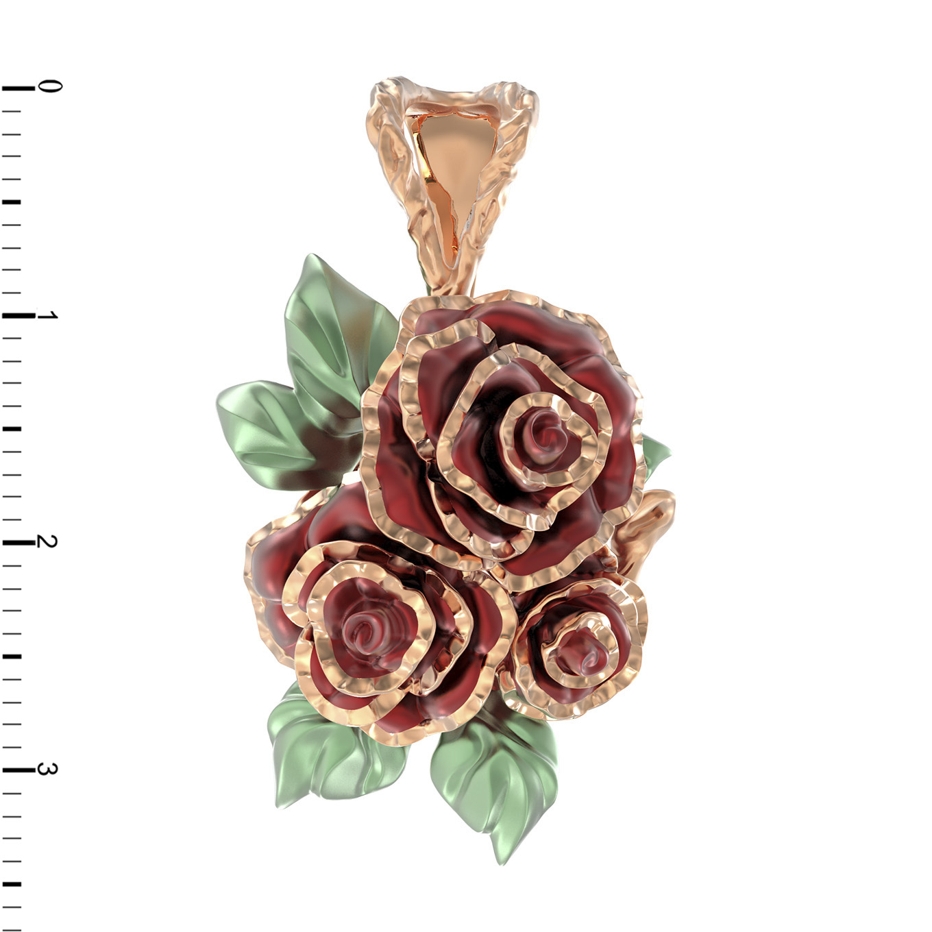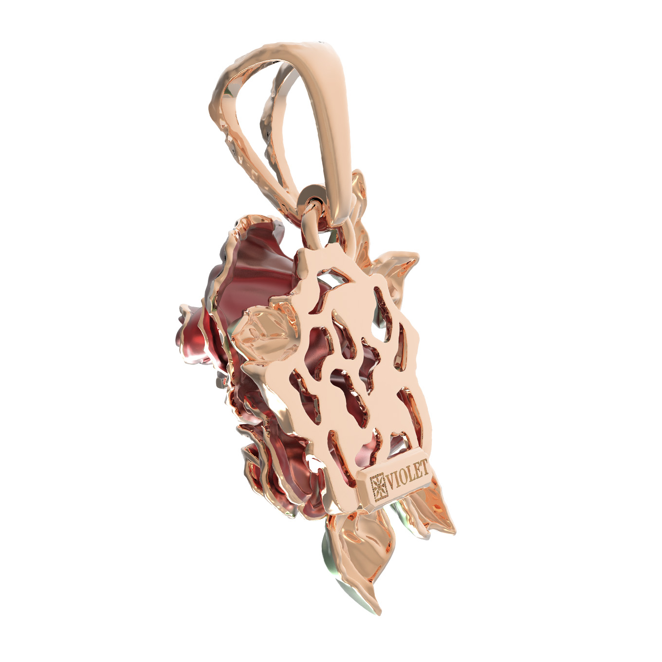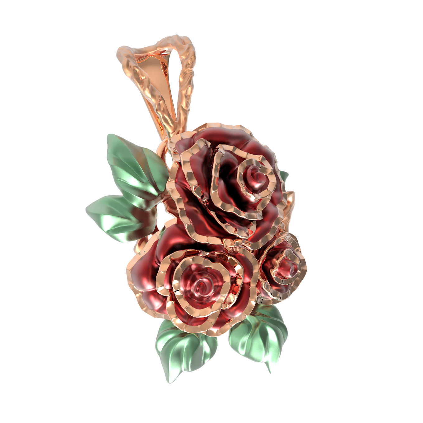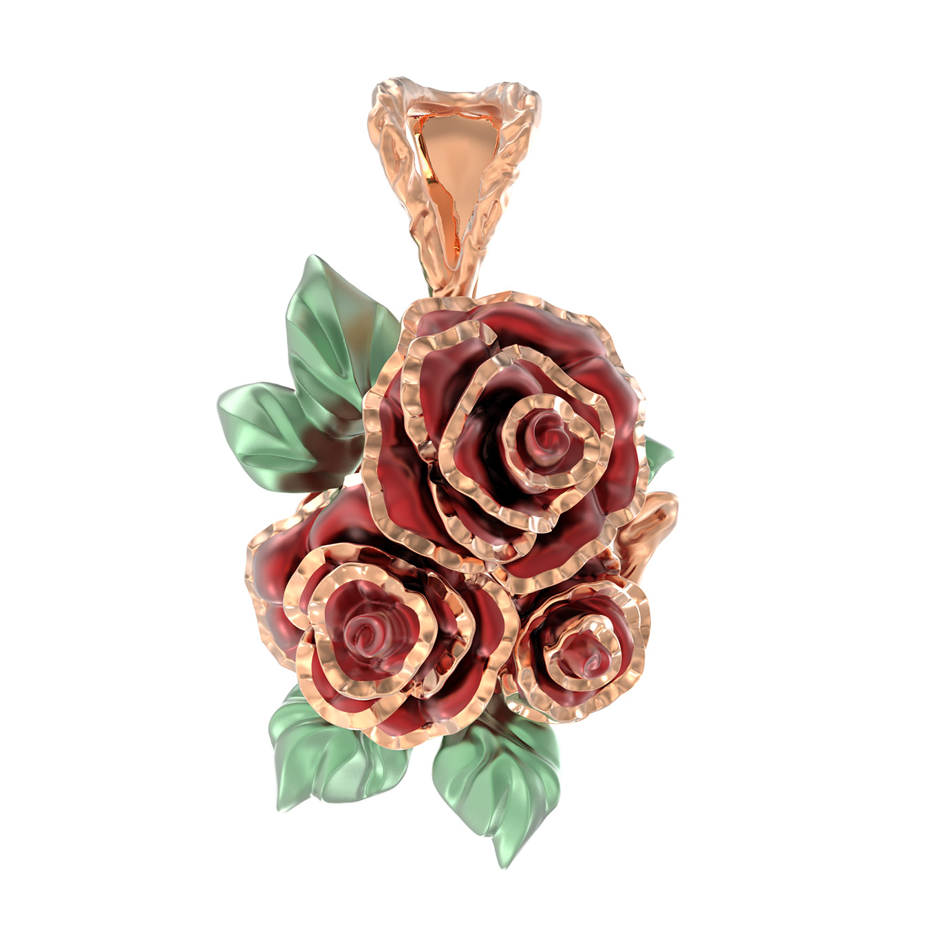 Материалом для создания данной модели послужило красное золото 585 пробы. Благородный сплав обеспечивает изделию долговечность и красивый, теплый отблеск. Красный цвет материала идеально подчеркивает форму цветов, создавая эффектный визуальный объем. Ювелиры уделили особое внимание каждому лепестку, благодаря чему подвеска выглядит живой и утонченной.