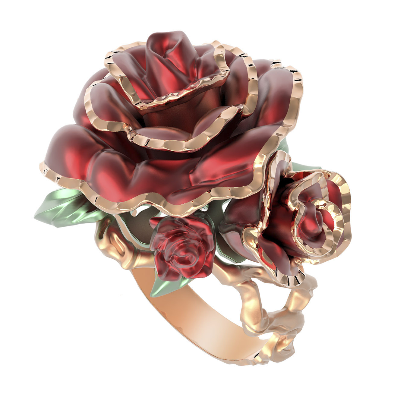 Роскошное кольцо из коллекции De Luxe — Кармен — это настоящее произведение ювелирного искусства, вдохновленное нежной красотой природы. Изделие выполнено из красного золота 585 пробы, которое идеально подчеркивает теплоту и глубину дизайна. В центре композиции находится изящный цветочный мотив: мастерски проработанные бутоны роз привлекают внимание своей детальностью и мягкими линиями.