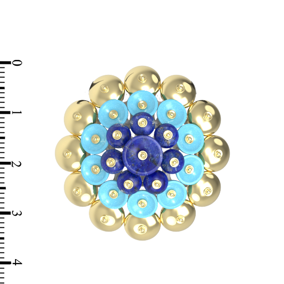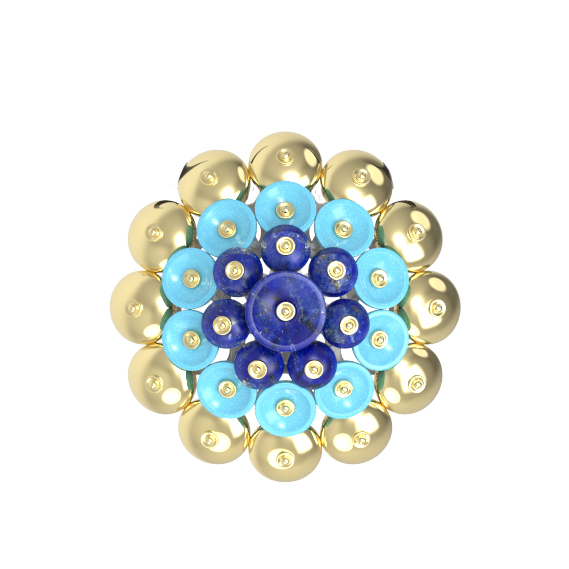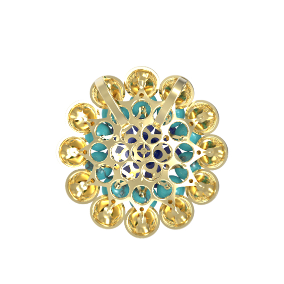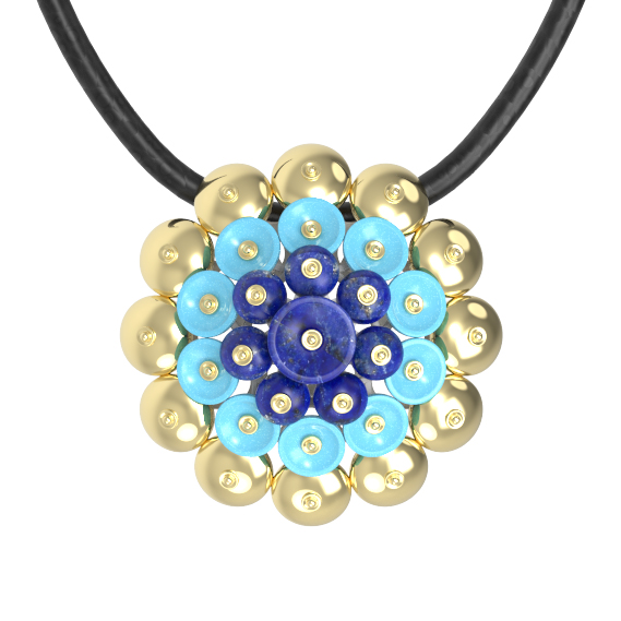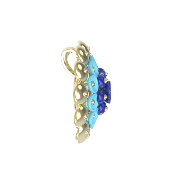 Каждая деталь подвески из лимонного золота проработана с вниманием к ювелирному мастерству. Бирюза и лазурит в сочетании с драгоценным металлом формируют яркое и запоминающееся украшение, которое станет достойным дополнением вашей коллекции или изысканным подарком для ценителей эксклюзивного дизайна.