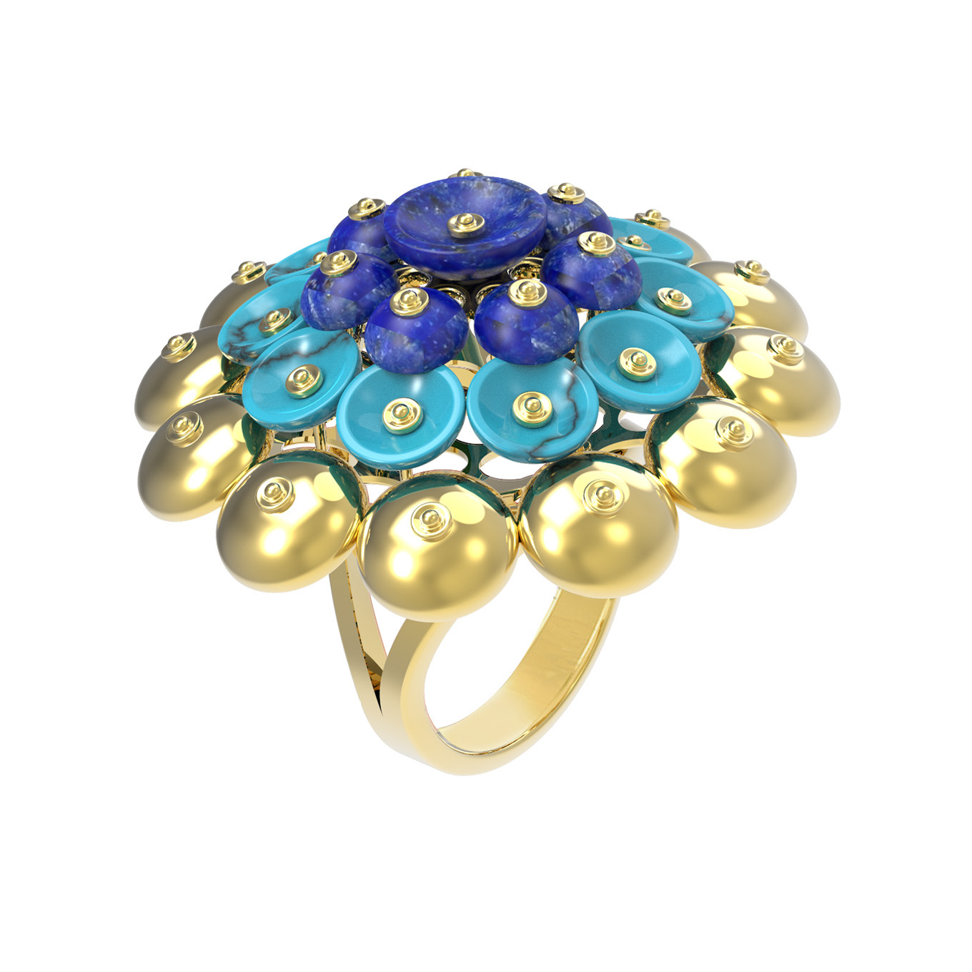 Кольцо из лимонного золота c бирюзой и лазуритом