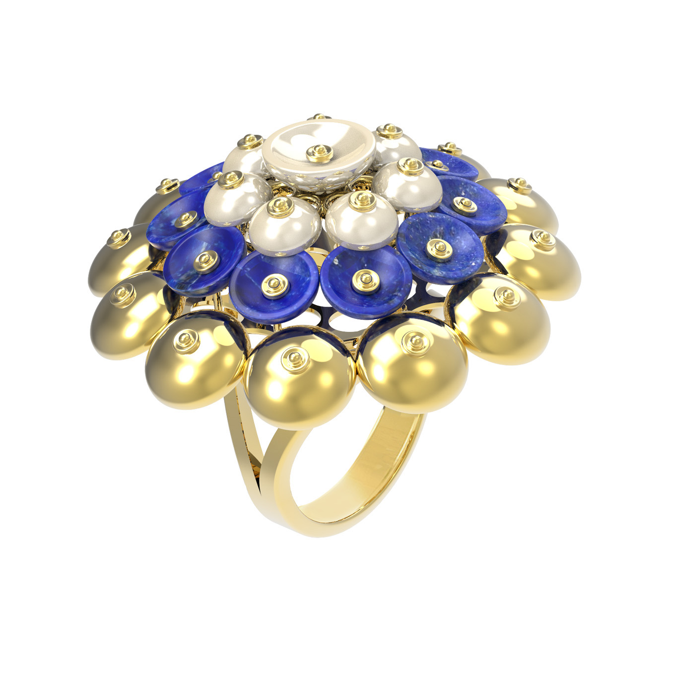Кольцо из лимонного золота c лазуритом и перламутром