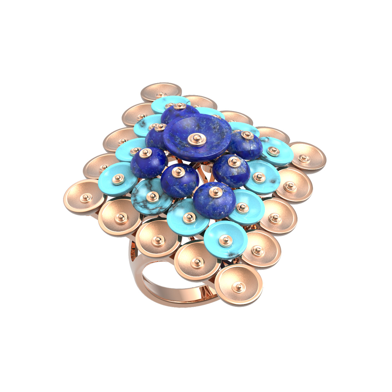 Кольцо из золота c бирюзой и лазуритом
