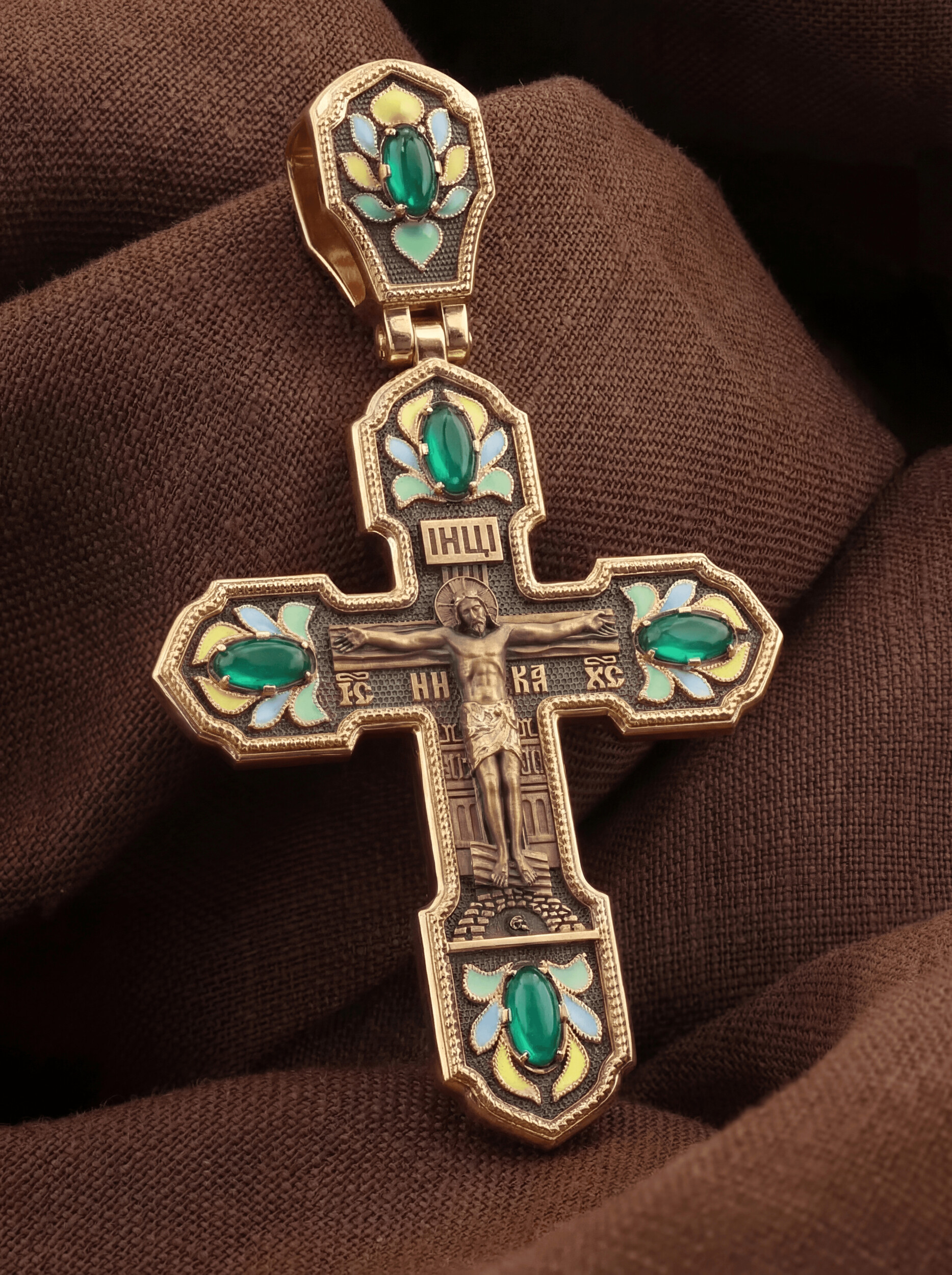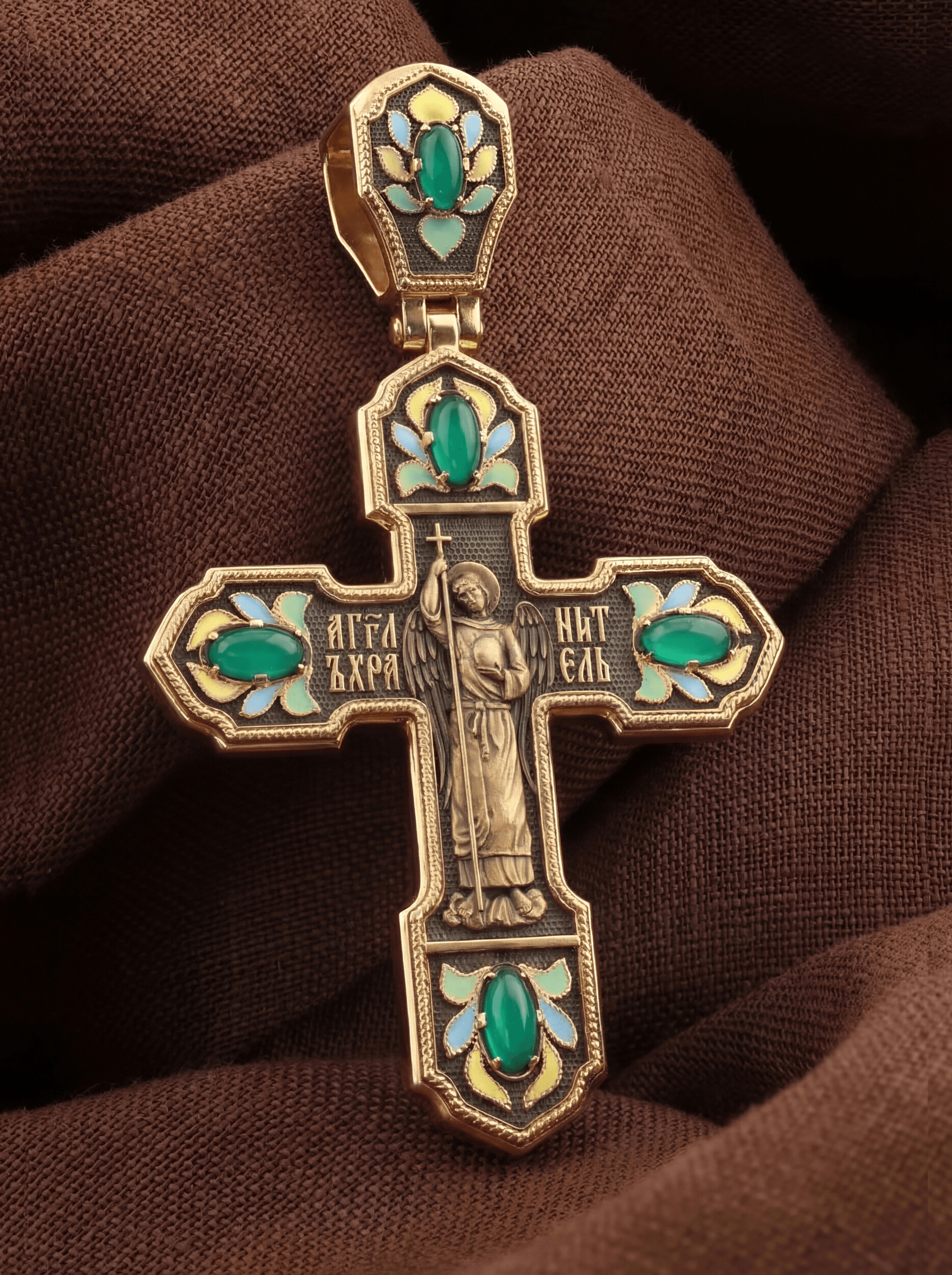 Крест из золота c эмалью и хризопразом