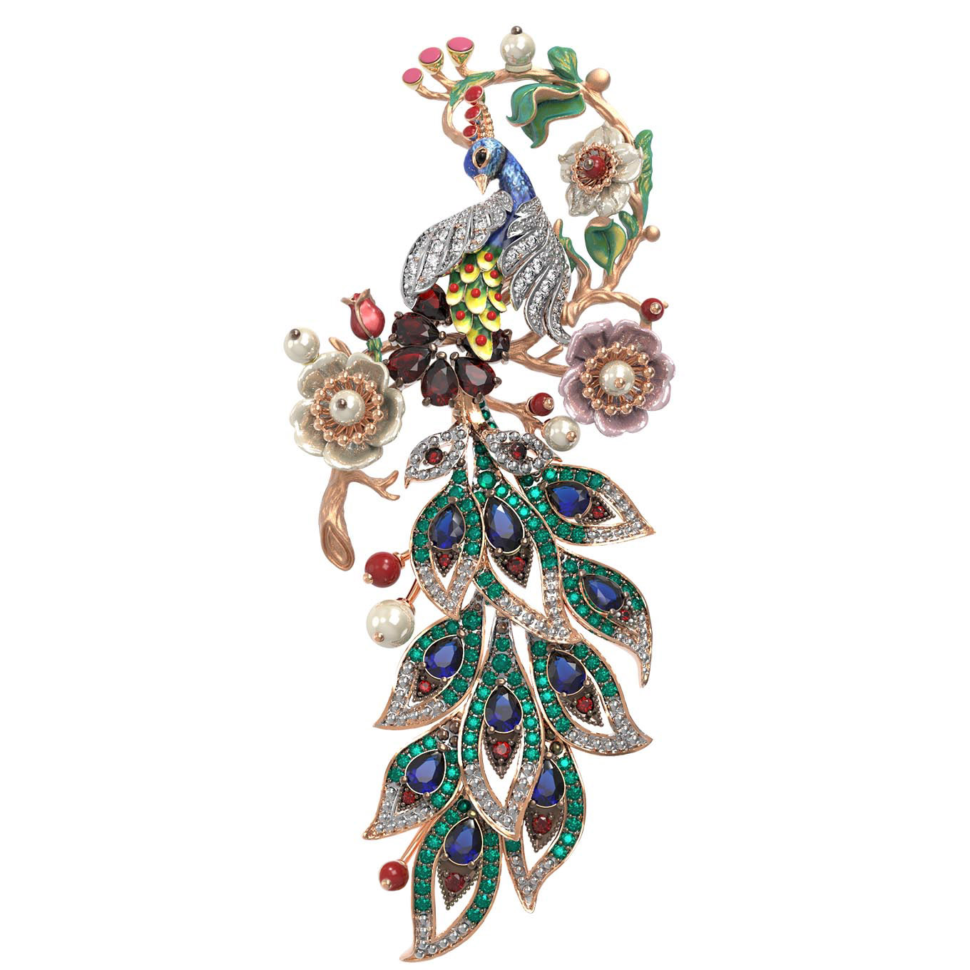 Роскошная брошь из красного золота 585 пробы из коллекции De luxe Premium — Павлин станет безупречным акцентом вашего образа. Дизайн изделия вдохновлен образом грациозной птицы, воплощающей красоту и величие павлина. Ювелирная композиция поражает своей детализацией и многообразием материалов.