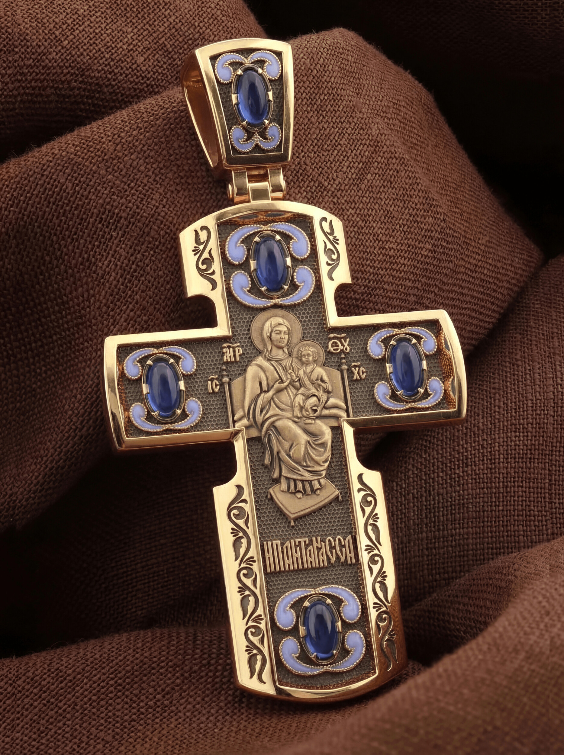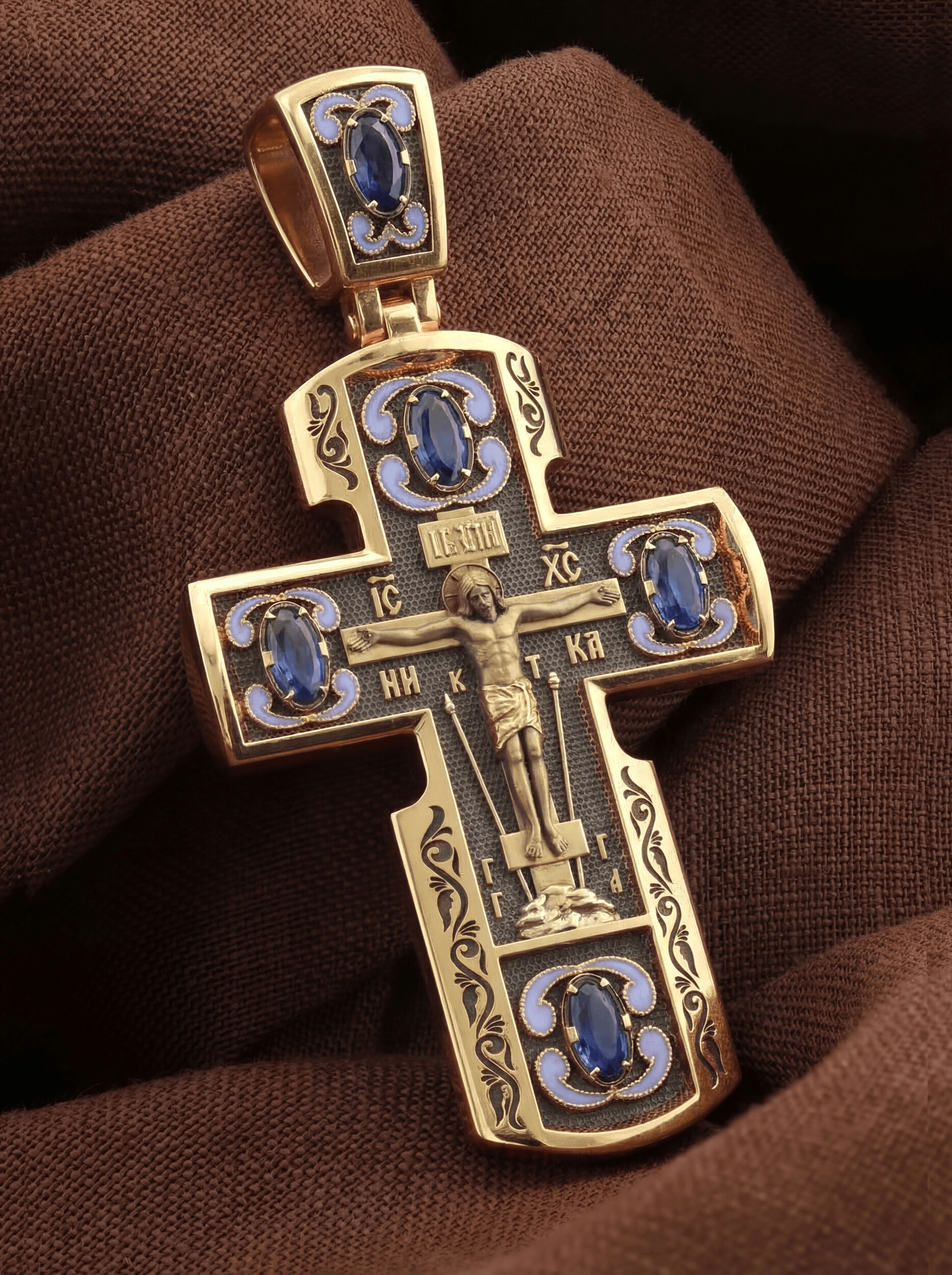 Крест из золота c эмалью и сапфиром