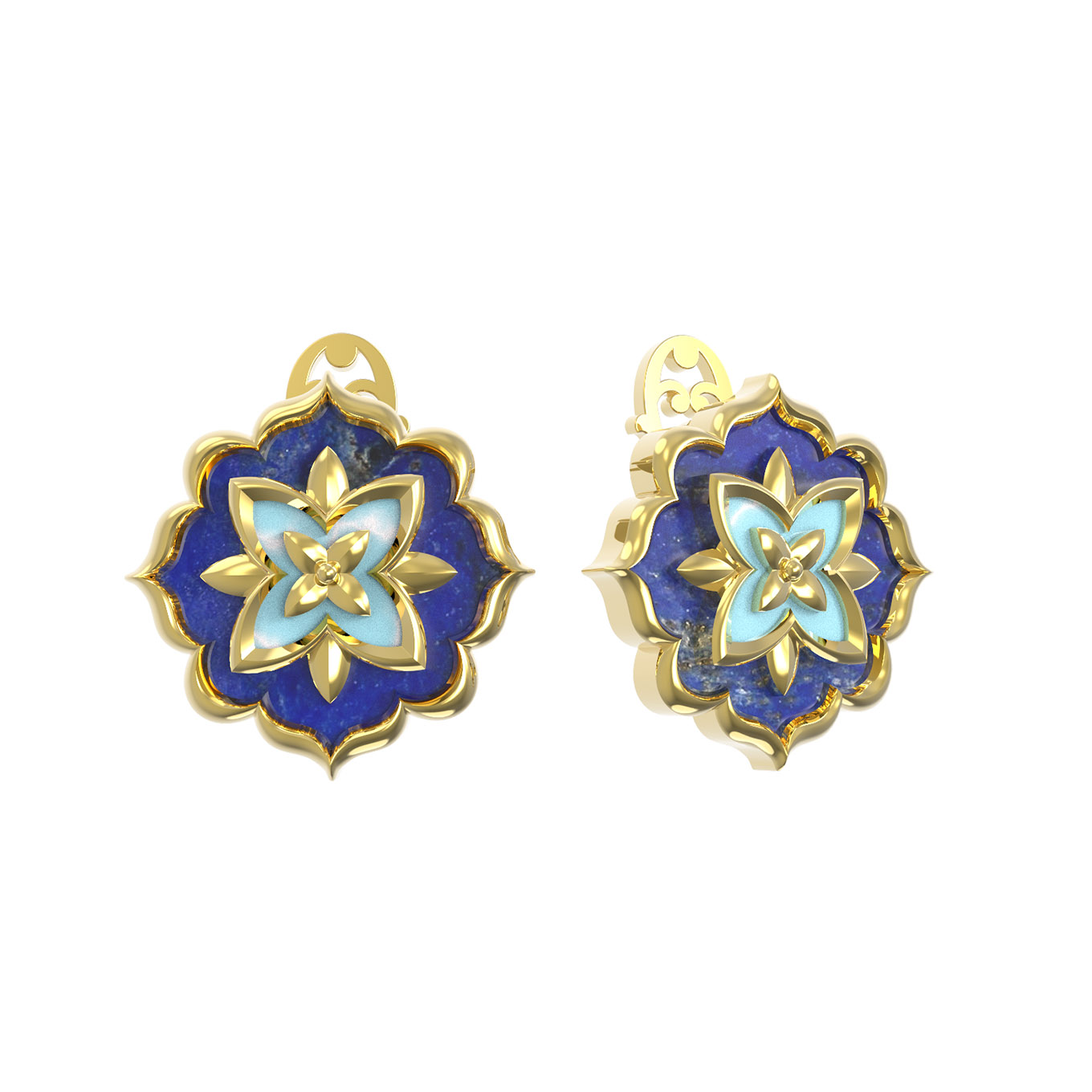 Лимонное золото — уникальный сплав, чье холодное солнечное сияние идеально дополняет природную красоту четырех вставок. Визуально серьги напоминают старинные флористические мотивы, характерные для эпохи Возрождения. Благодаря продуманной форме и безупречному сочетанию бирюзы и лазурита, данные серьги способны стать акцентным элементом вашего образа. Лаконичность линий и глубокая проработка деталей делают их универсальным аксессуаром, который одинаково гармонично дополнит стиль как женщин, так и мужчин, предпочитающих статусные украшения.