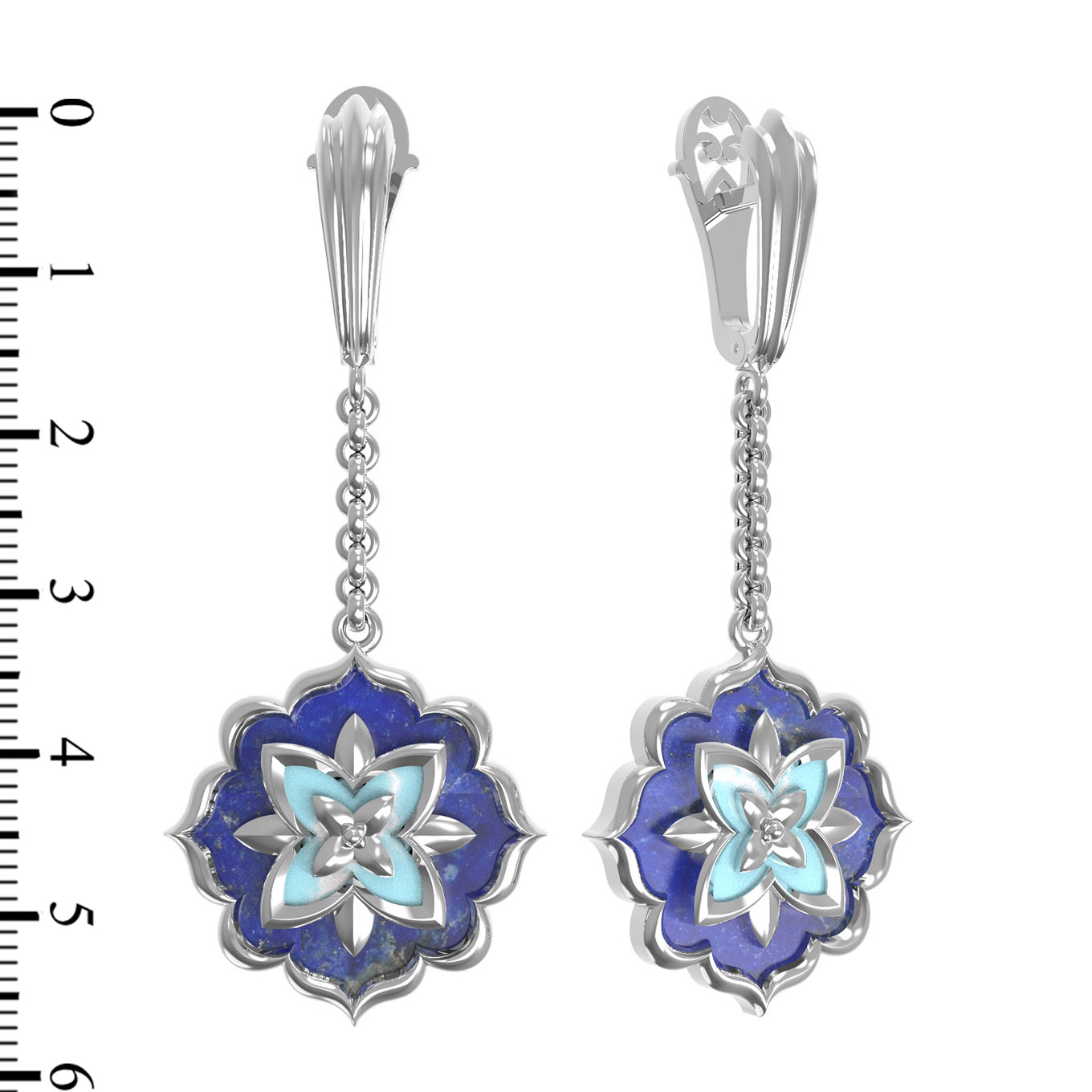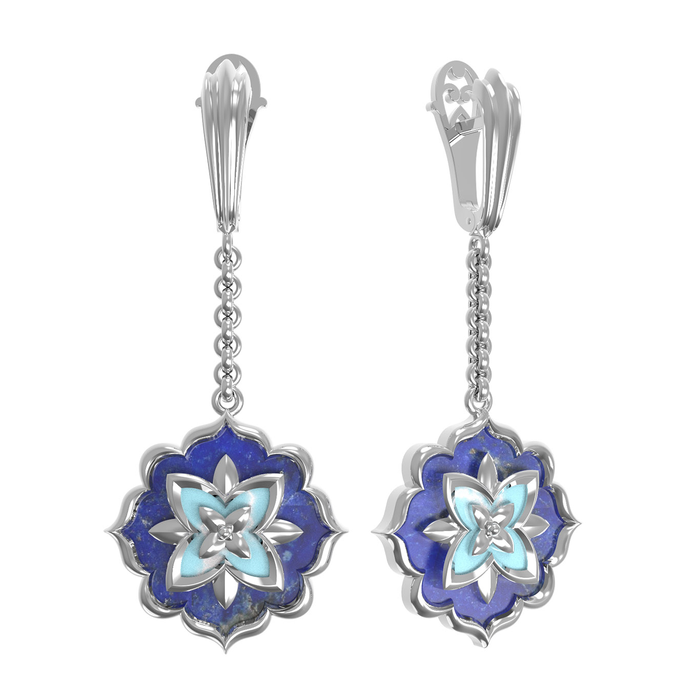 Центральным элементом дизайна является изысканная композиция из четырех вставок: насыщенный синий лазурит в сочетании с нежным бирюзовым оттенком бирюзы создает контрастный, притягательный образ. Архитектурная точность исполнения подчеркивает статус изделия, превращая его в заметный акцент вашего стиля.