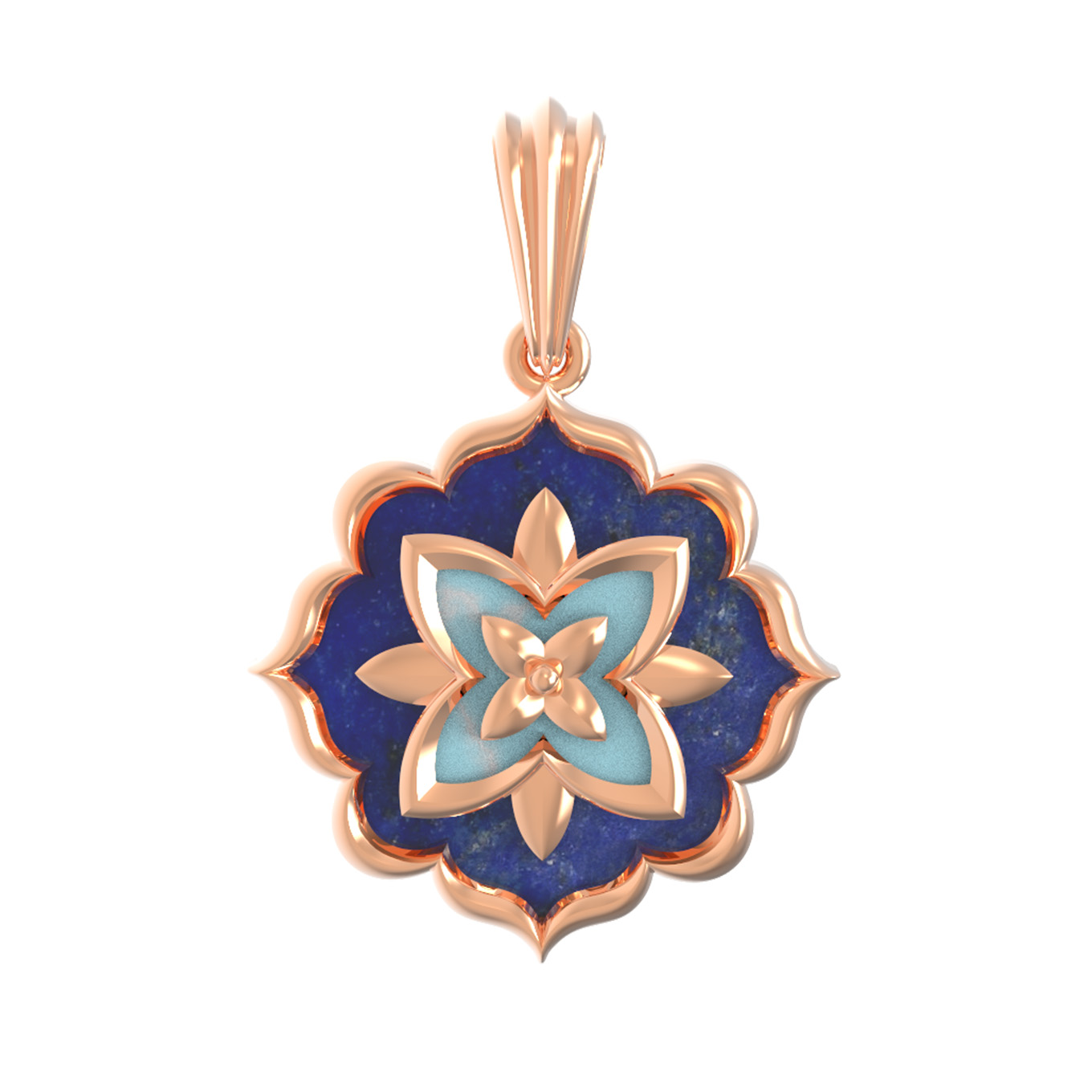 Подвеска из золота c бирюзой и лазуритом