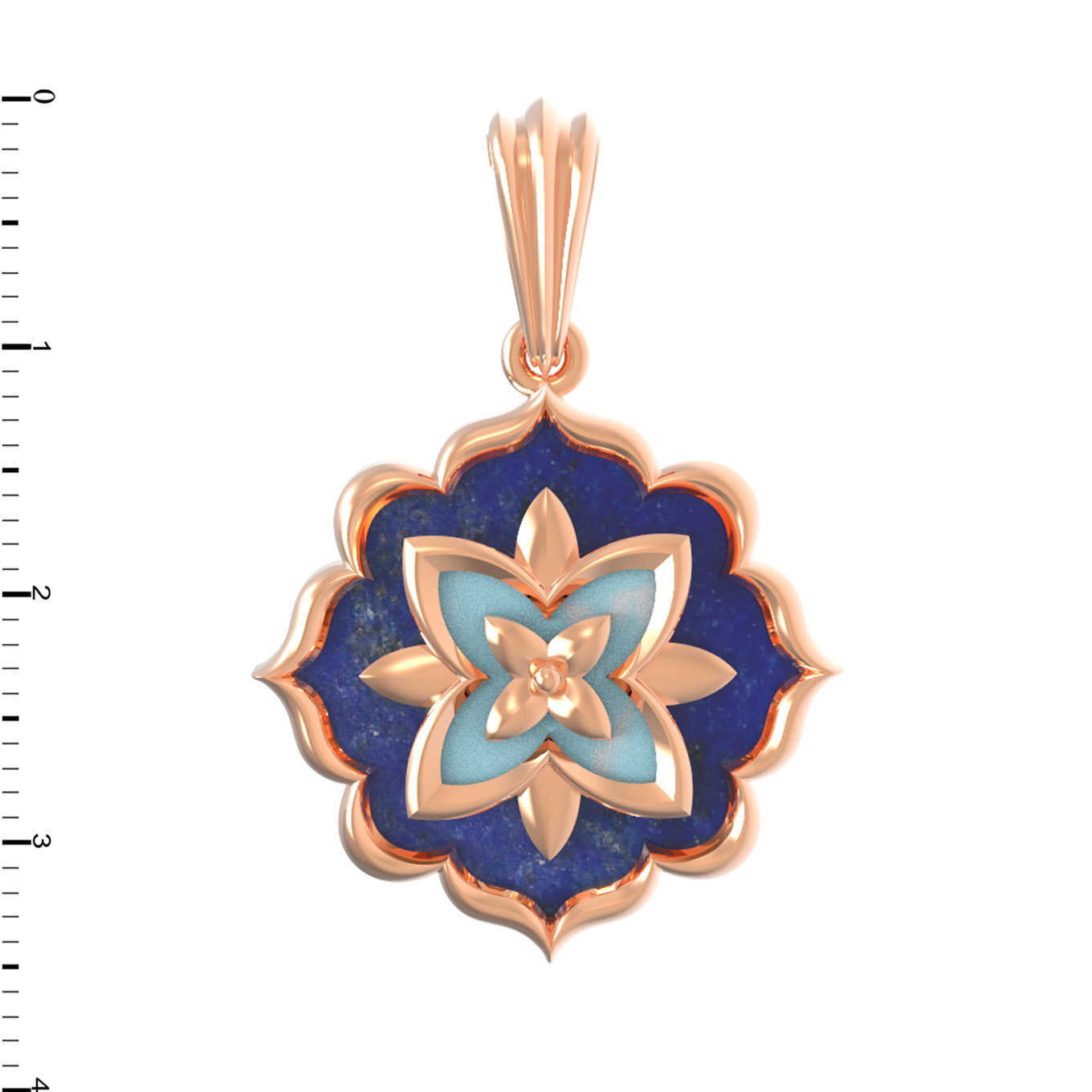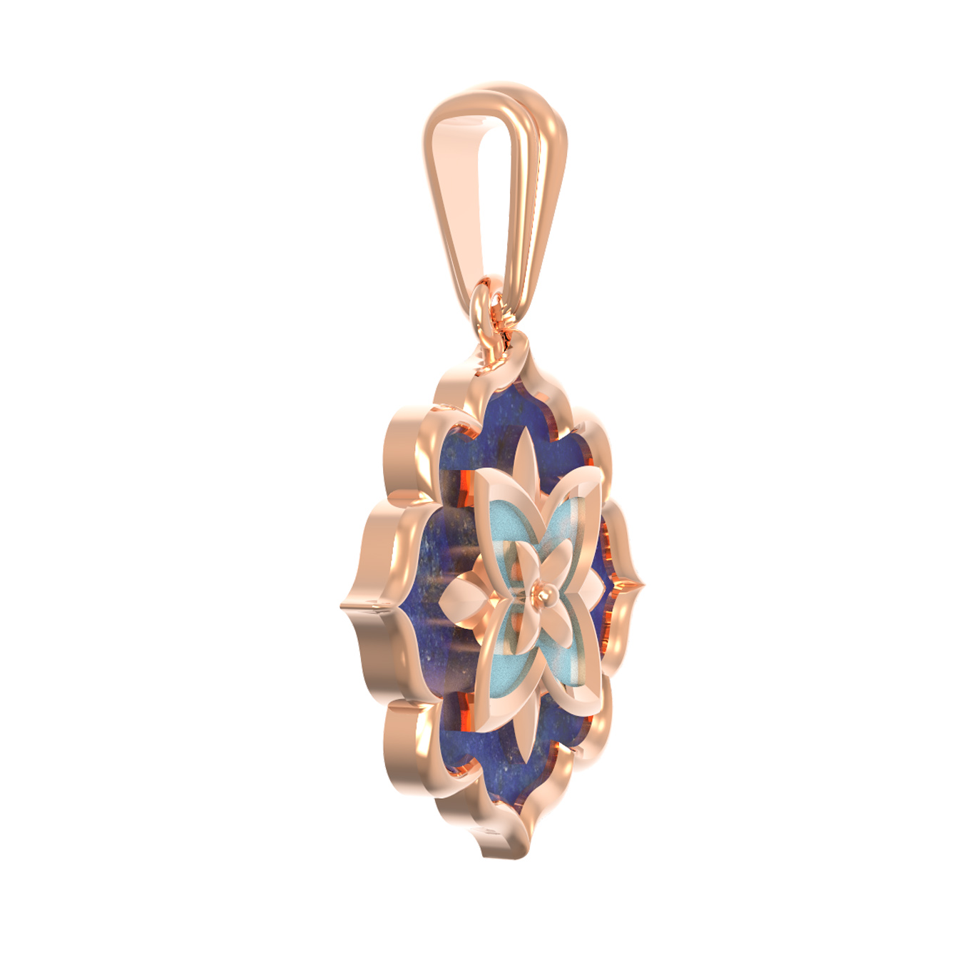 Подвеска из красного золота 585 пробы — это изысканное ювелирное изделие, вдохновленное эстетикой эпохи Возрождения. В дизайне украшения мастерски воплощены мотивы стиля Ренессанс, где гармония форм и благородство материалов создают поистине роскошный образ. Центром композиции является сочетание двух контрастных вставок: небесно-голубой бирюзы и глубокого синего лазурита. Эти два натуральных камня дополняют друг друга, подчеркивая насыщенный цвет красного золота.