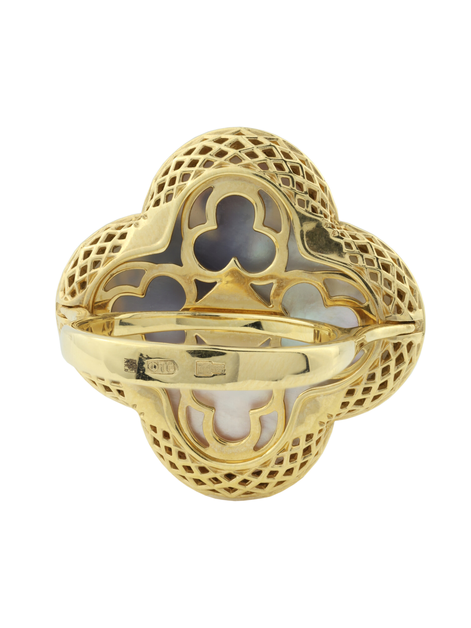 Кольцо из лимонного золота c эмалью и перламутром