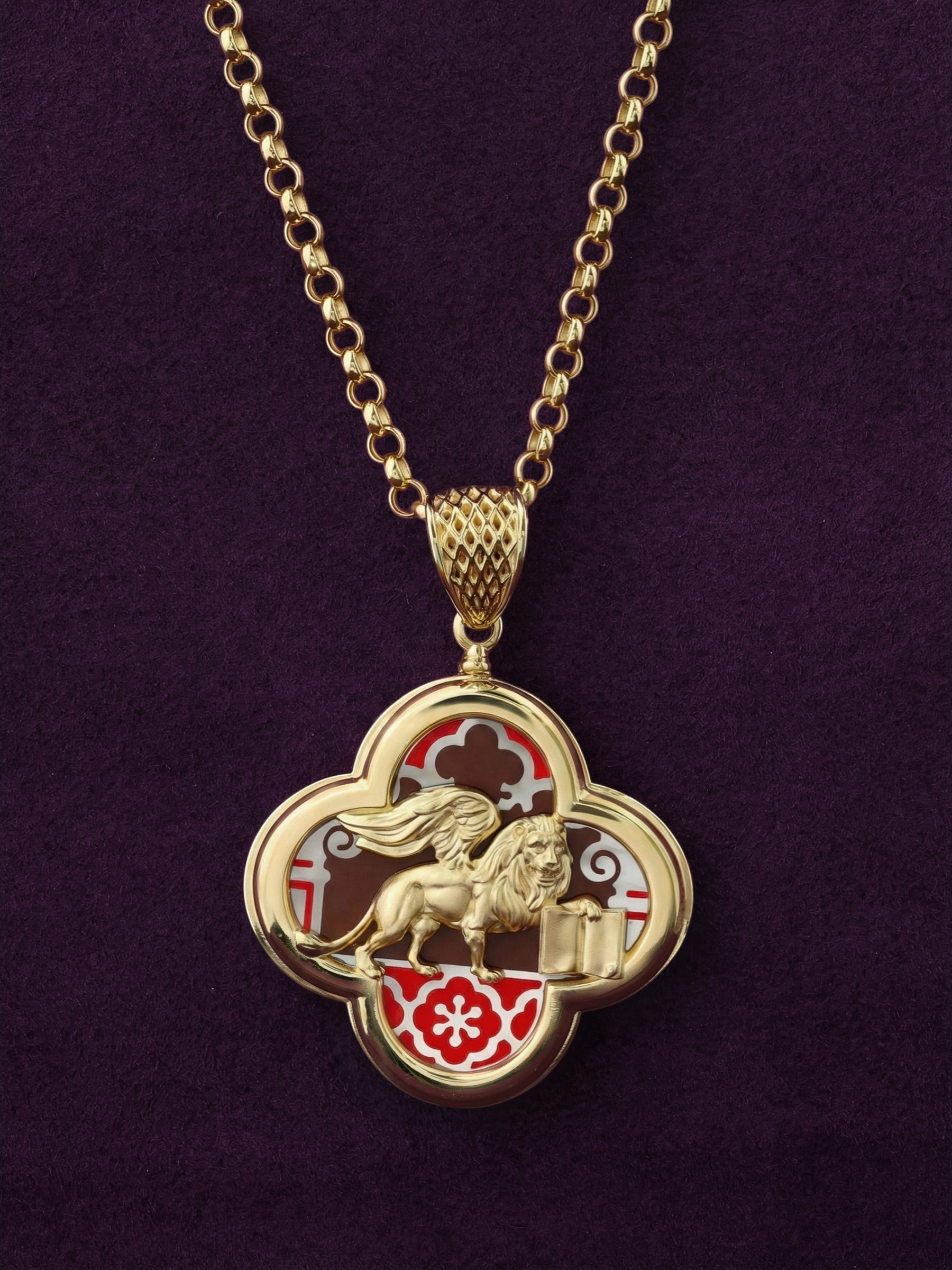 Откройте для себя воплощение роскоши с этой изысканной подвеской, представленной в коллекции De luxe Premium — Венецианский лев. Изделие выполнено из благородного лимонного золота 585 пробы, которое придает украшению теплый и притягательный оттенок. Дизайн подвески вдохновлен величием венецианской эстетики и центральным образом этой серии — грациозным львом. Фигурка льва, мастерски исполненная в золоте, гармонично сочетается с искусной отделкой цветной эмалью и нежным, переливающимся перламутром. Разноцветная эмаль подчеркивает детали композиции, создавая глубокий и насыщенный визуальный акцент.