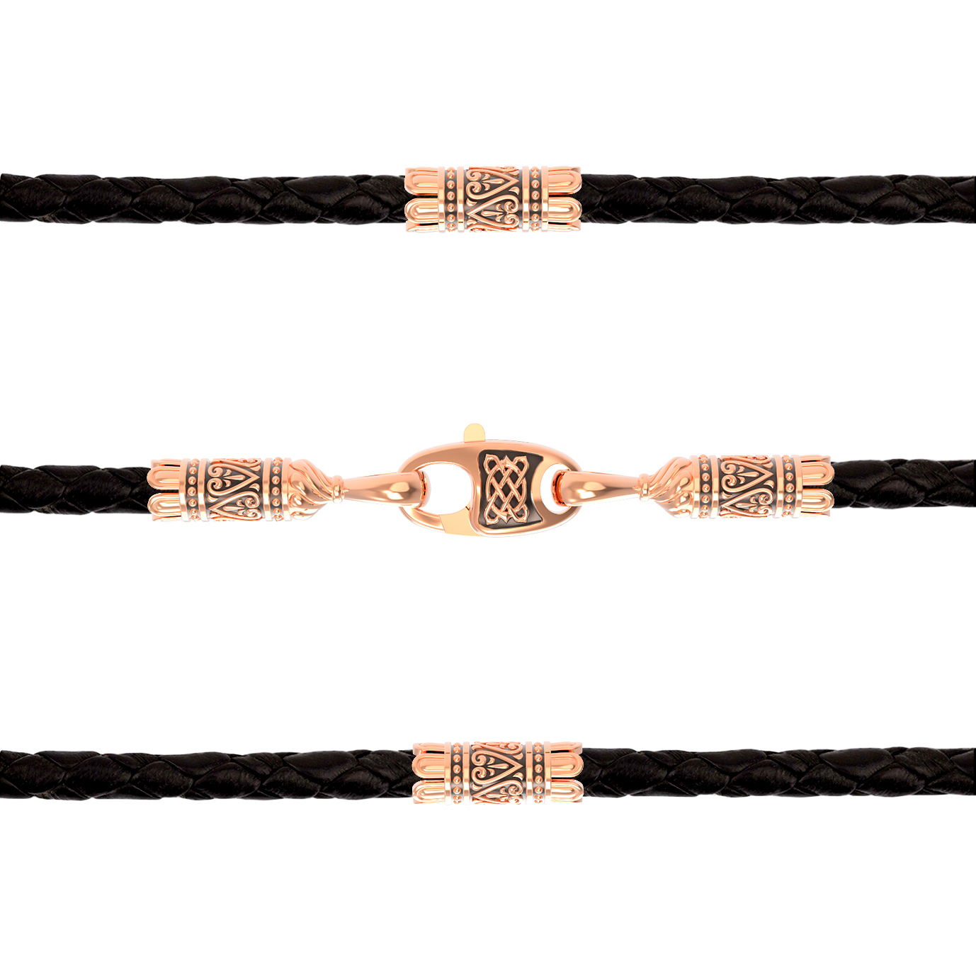 Гайтан из золота c кожаным шнурком