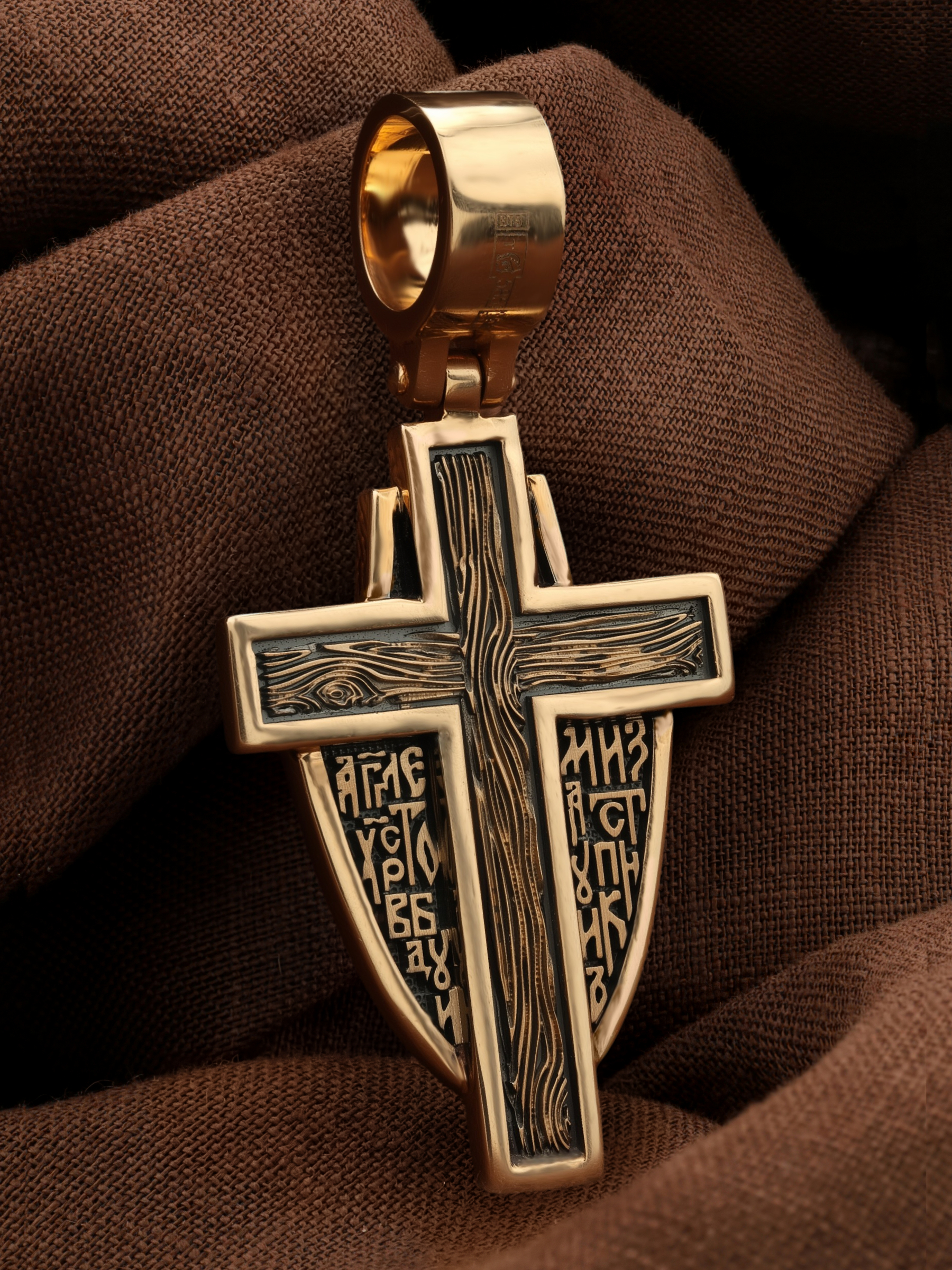 Основой композиции является изображение Святого Ангела-Хранителя держащего в правой руке крест, а в левой — мечь. Он изображен на фоне воинского щита. Крест является символом жертвенной любви всеблагого Бога к падшим людям, всепобеждающим духовным оружием христиан, основанием и средоточием церковной жизни. Господь сказал: «кто хочет идти за Мною, отвергнись себя, и возьми крест свой, и следуй за Мною». (Мк. 8: 34). Ангел-Хранитель — это Ангел приставляемый Богом к человеку при крещении для охраны и помощи в добрых делах. Он невидимо находится при человеке на протяжении всей его жизни, если человек сохраняет в себе любовь к Богу и истинную веру перед Ним. Ангел-Xранитель делают для нас все, что служит к истинному нашему благу и спасению. Невидимо пребывая при нас постоянно, он, руководствуя нас ко спасению, не только по нашему желанию таинственно наставляет нас на все доброе и полезное, не только возносит наши молитвы к Богу, но еще и сам от себя охраняют и защищают нас от врагов видимых и невидимых и ходатайствует за нас пред Богом. Ангел-Хранитель так любит нас, как никто на земле любить не может. Одного лишь каждому из нас он желает — спасения души; к этому он направляет все свои заботы. И если видит нас также заботящимися о спасении, радуется, если же видит нас пребывающими в нерадении о душе своей, скорбит. Но и самый великий грешник может примириться со своим Ангелом-Хранителем посредством искреннего раскаяния в грехах и оставления их навсегда. В таком случае, по слову Писания, великая радость бывает для всех ангелов на небесах (Лк. 15:10).