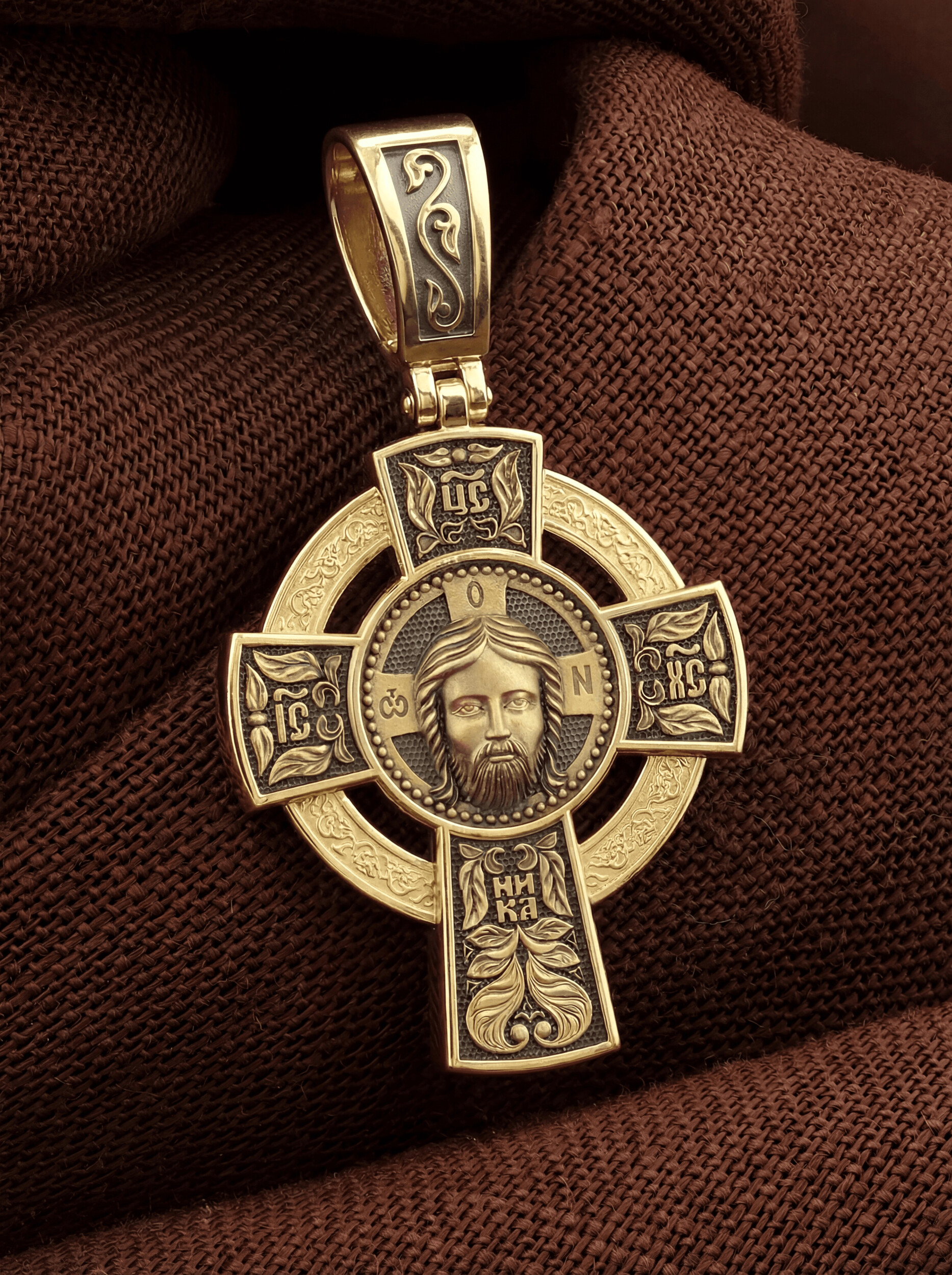 Нательный крест с кругом повторяет форму древних крестов, распространенных в России с конца XIII века. Простая лаконичная форма соединяет в себе два символа Бога: крест и круг. Крест знаменует Иисуса Христа, Бога, воплотившегося и распятого за грехи людей, круг — Бога сущего на Небесах, безначального и бесконечного. Часто такие кресты называют «кельтскими» или «новгородскими», так как кресты подобной формы были принесены на Русь кельтами, задолго до русских принявших христианство. Древнейший русский крест такой формы был найден в новгородской земле, в селе Боровичи.