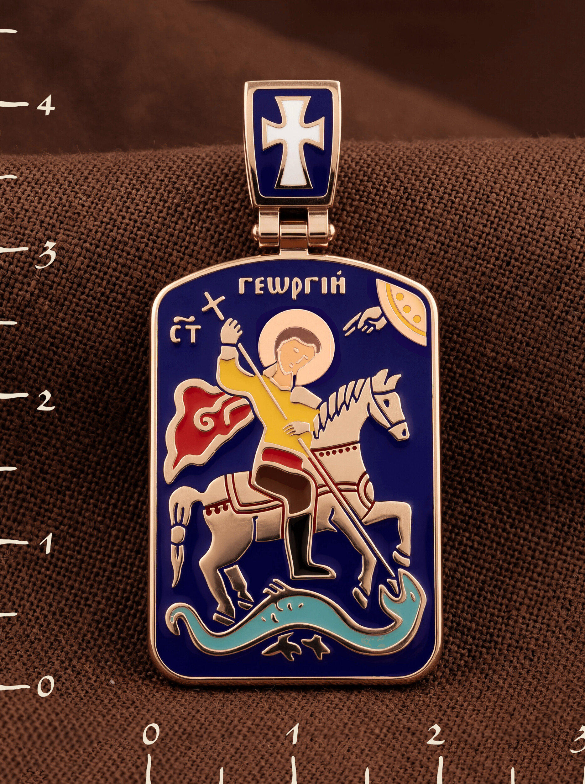 Основой композиции лицевой стороны является изображение Святого Георгия Победоносца. Святой Георгий — один из наиболее почитаемых святых в Христианской Церкви. На Руси он известен как Юрий или Егорий, покровитель воинов, помощник в крестьянском труде.
