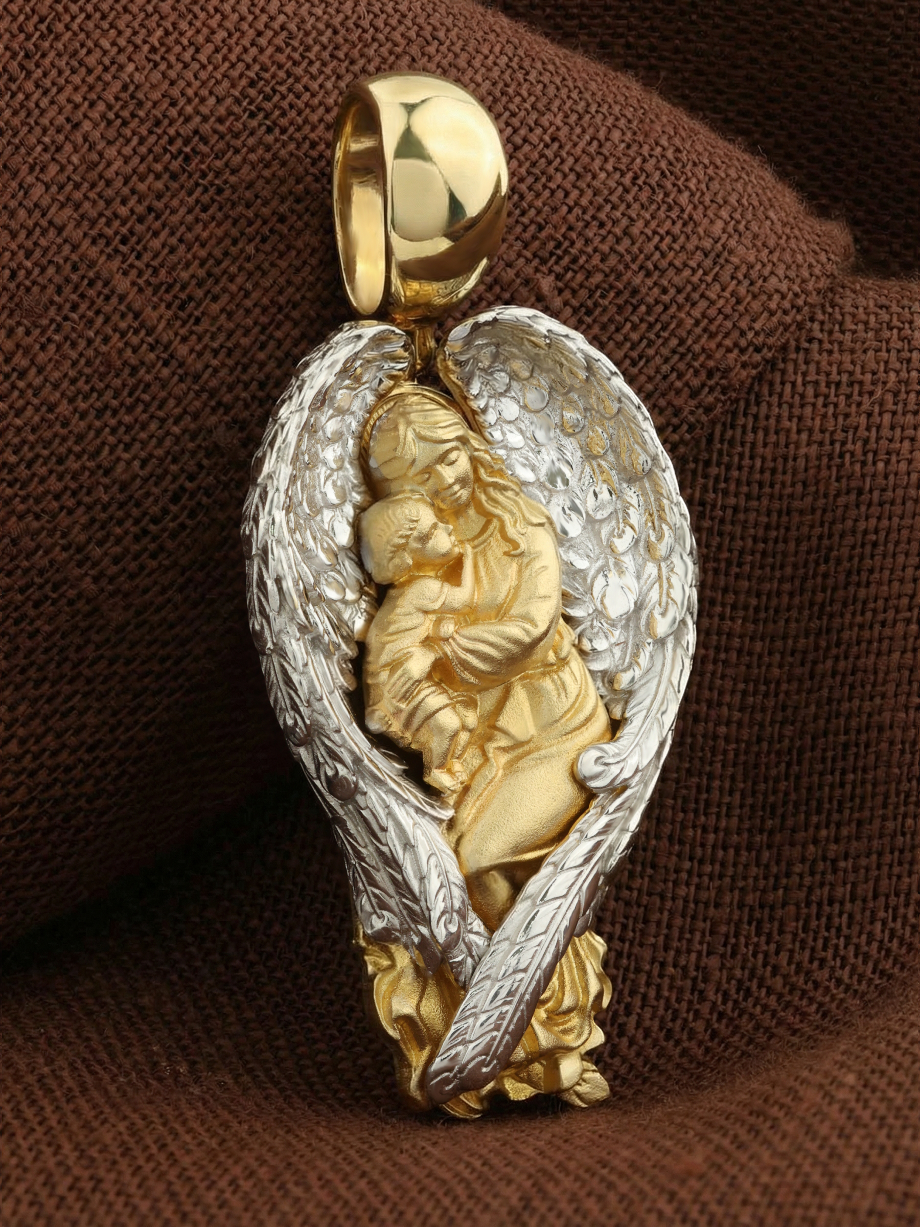 На лицевой стороне образка изображен Святой Ангел-Хранитель держащий в руках младенца. Младенец — это образ души человека. Ангел-Хранитель — это Ангел приставляемый Богом к человеку при крещении для охраны и помощи в добрых делах. Он невидимо находится при человеке на протяжении всей его жизни, если человек сохраняет в себе любовь к Богу и истинную веру перед Ним. Ангел-Xранитель делают для нас все, что служит к истинному нашему благу и спасению. Невидимо пребывая при нас постоянно, он, руководствуя нас ко спасению, не только по нашему желанию таинственно наставляет нас на все доброе и полезное, не только возносит наши молитвы к Богу, но еще и сам от себя охраняют и защищают нас от врагов видимых и невидимых и ходатайствует за нас пред Богом. Ангел-Хранитель так любит нас, как никто на земле любить не может. Ангел-Хранитель — присный друг наш, незримый тихий собеседник, пресладостный утешитель. Одного лишь каждому из нас он желает — спасения души; к этому он направляет все свои заботы. И если видит нас также заботящимися о спасении, радуется, если же видит нас пребывающими в нерадении о душе своей, скорбит. Согласно церковной традиции, эти небесные воины являются нашими проводниками и в загробном мире. На Страшном Суде они будут ходатайствовать за нас перед Всевышним.