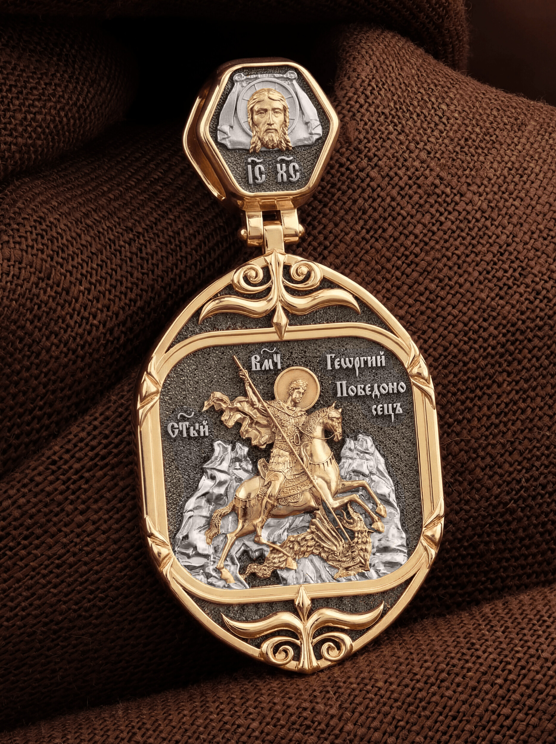 Основой композиции лицевой стороны является изображение Святого Георгия Победоносца.