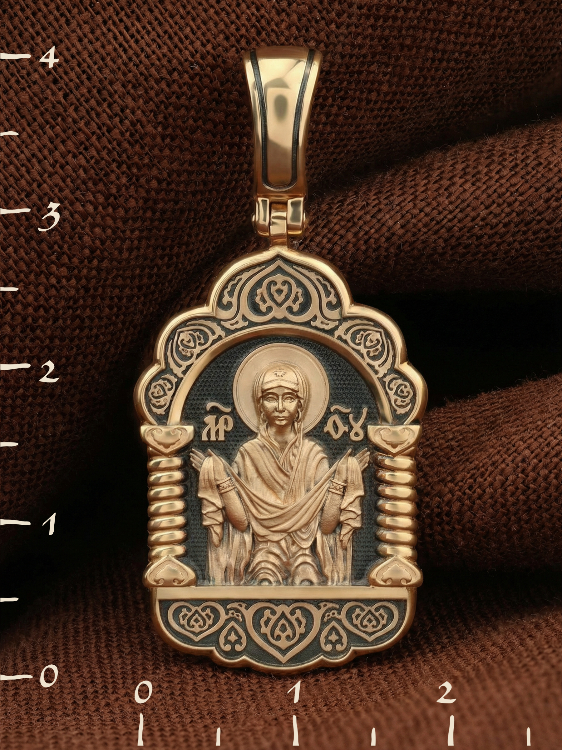 На обороте образка написано: «Владычице, покрой нас Честным Твоим покровом и избави нас от всякия зла».