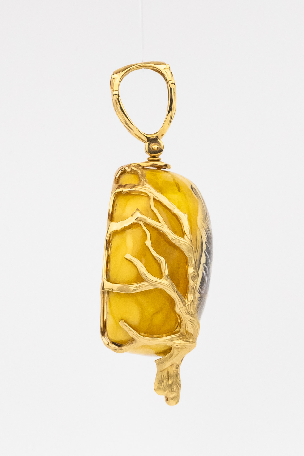 Эта подвеска гармонично дополнит любой образ, добавив в него нотки природной красоты и эксклюзивности. Ювелирное изделие создано для ценителей нетривиальных украшений и подходит как для женщин, так и для мужчин, которые стремятся подчеркнуть свою индивидуальность. Качественная работа ювелиров делает эту подвеску не просто аксессуаром, а настоящим произведением искусства, которое будет актуально вне времени. Добавьте в свою коллекцию драгоценностей этот акцентный элемент, объединяющий роскошь лимонного золота и загадочность природного янтаря.