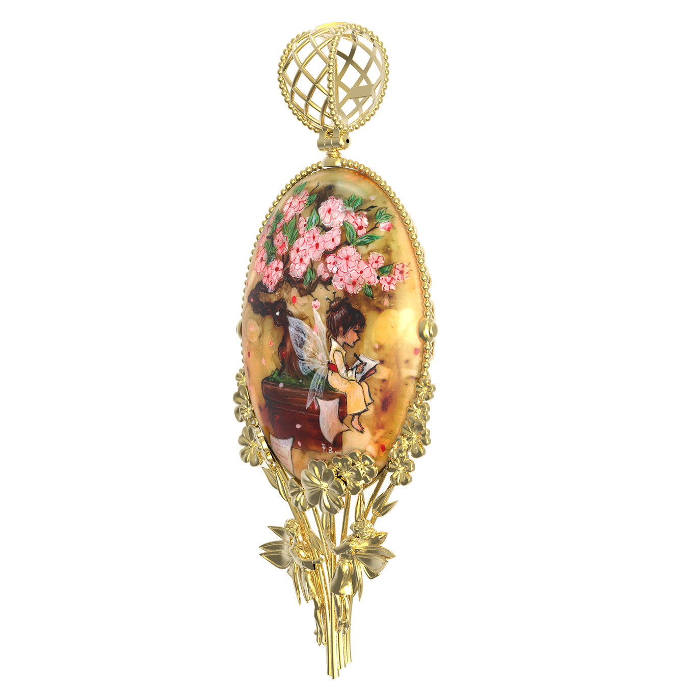 Оправа из лимонного золота подчеркивает природные оттенки камня, создавая гармоничный и благородный контраст. Изящные декоративные элементы в виде растительных мотивов придают подвеске особый шарм и воздушность. Это украшение отличается универсальностью стиля: подвеска подходит как для женщин, так и для мужчин, предпочитающих авторские аксессуары с глубоким смыслом и художественной ценностью. Ювелирное изделие с одной вставкой янтаря с росписью подчеркнет ваш индивидуальный стиль и станет памятным подарком для ценителей эксклюзивных драгоценностей.