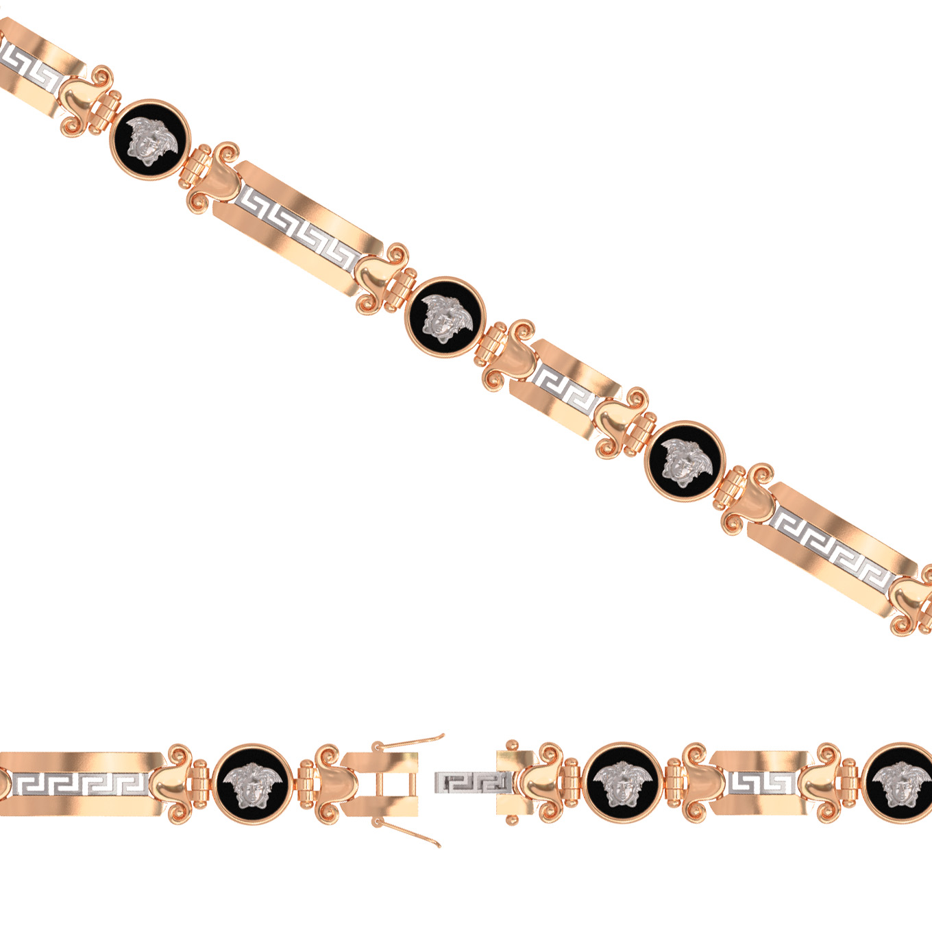 Изысканный браслет из красного золота 585 пробы — это воплощение статуса и безупречного вкуса. Украшение из коллекции De Luxe — Браслеты De Luxe притягивает взгляды своим глубоким контрастом: благородный теплый оттенок золота гармонично сочетается с выразительными вставками черного оникса. Дизайн изделия объединяет классическую роскошь и современные геометрические мотивы, создавая цельный и запоминающийся образ.