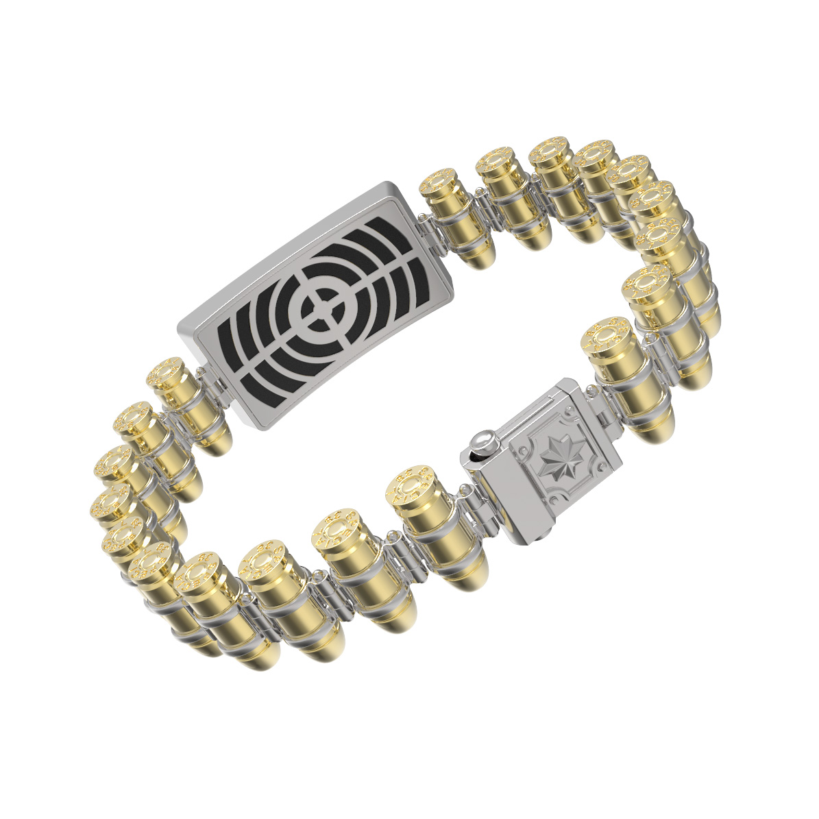Мужской браслет из коллекции De Luxe — Браслеты De Luxe — это выбор тех, кто ценит брутальный стиль, бескомпромиссное качество и оригинальный дизайн. Изделие выполнено из лимонного золота 585 пробы, которое придает украшению благородный и теплый оттенок. Основной акцент модели — прямоугольная центральная вставка из черного оникса, создающая контрастное сочетание с драгоценным металлом. Ювелирная композиция дополнена семью вставками, что делает дизайн завершенным и динамичным.