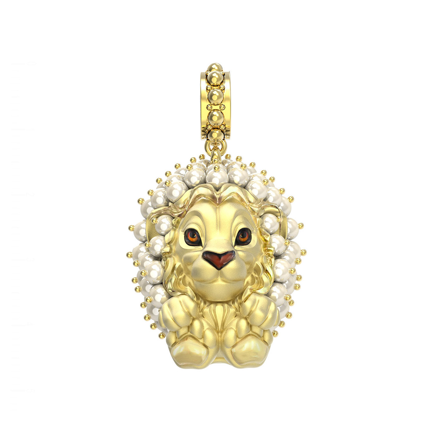 Центральный элемент дизайна украшен яркими акцентами из цветной эмали, которые оживляют образ, делая его по-настоящему выразительным. Роскошная композиция дополнена вставками из жемчуга круглой формы в количестве 48 штук, чье белое сияние создает гармоничный контраст с золотой основой. Эта подвеска с изображением льва станет ярким акцентом в вашем гардеробе.